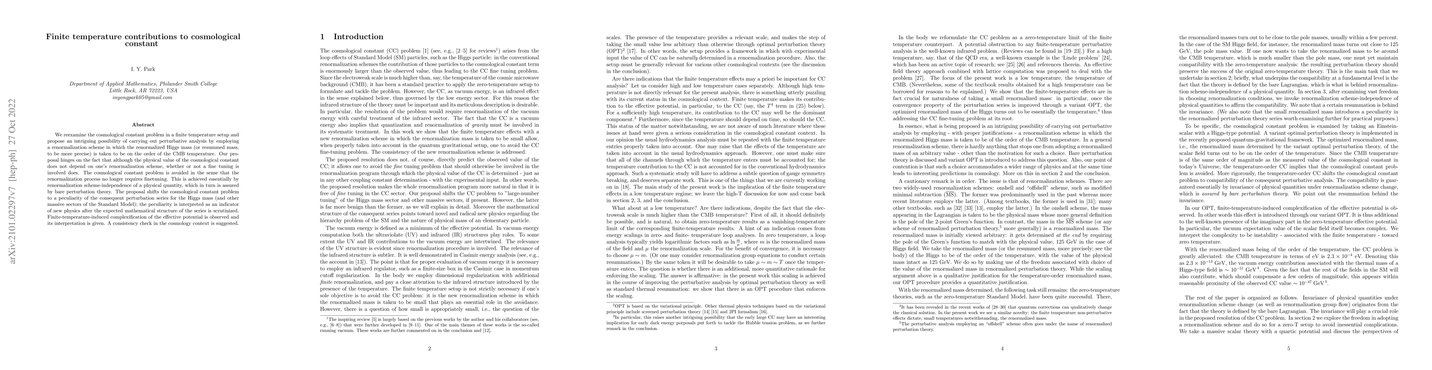 We reexamine the cosmological constant problem in a finite temperature setup and propose an intriguing possibility of carrying out perturbative analysis by employing a renormalization scheme in which the renormalized Higgs mass (or resummed mass, to be more precise) is taken to be on the order of the CMB temperature. Our proposal hinges on the fact that although the physical value of the cosmological constant does not depend on one's renormalization scheme, whether or not a fine tuning is involved does. The cosmological constant problem is avoided in the sense that the renormalization process no longer requires finetuning. This is achieved essentially by renormalization scheme-independence of a physical quantity, which in turn is assured by bare perturbation theory. The proposal shifts the cosmological constant problem to a peculiarity of the consequent perturbation series for the Higgs mass (and other massive sectors of the Standard Model); the peculiarity is interpreted as an indicator of new physics after the expected mathematical structure of the series is scrutinized. Finite-temperature-induced complexification of the effective potential is observed and its interpretation is given. A consistency check in the cosmology context is suggested.