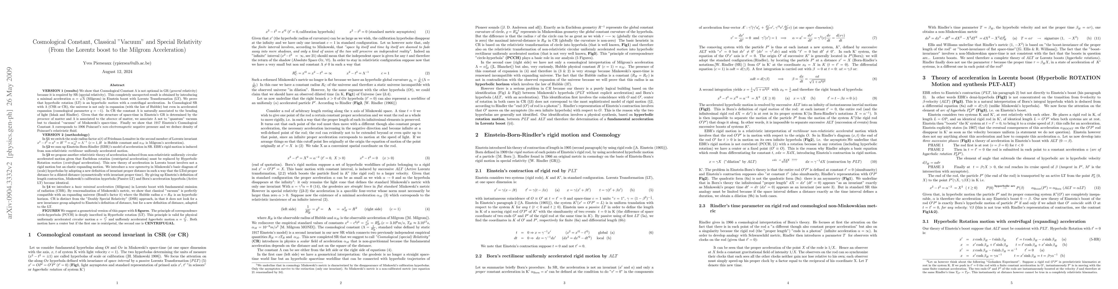 This paper argues that the Cosmological Constant (CC) is essential in General Relativity due to its necessity in Special Relativity, demonstrated by incorporating Milgrom's acceleration into Einstein's Lorentz boost. It concludes that the universe experiences accelerated expansion, and the CC is linked to classical vacuum rather than quantum vacuum, aligning with Poincaré's concept of non-electromagnetic negative pressure.