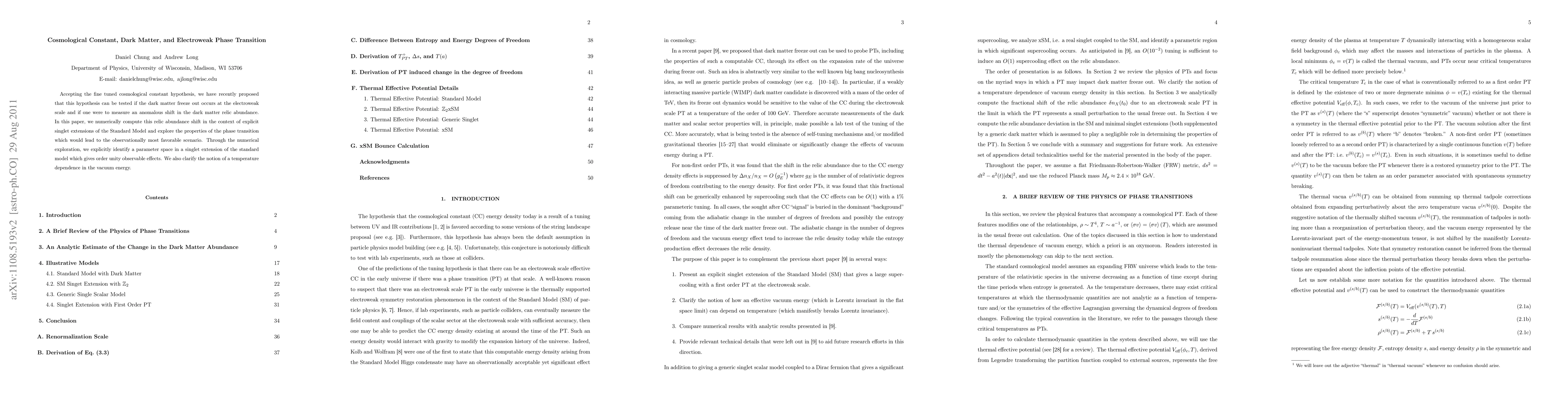 This paper proposes a method to test the fine-tuned cosmological constant hypothesis by examining dark matter relic abundance shifts at the electroweak scale, identifying a parameter space in singlet extensions of the Standard Model that yields observable effects, and discussing the temperature dependence of vacuum energy.