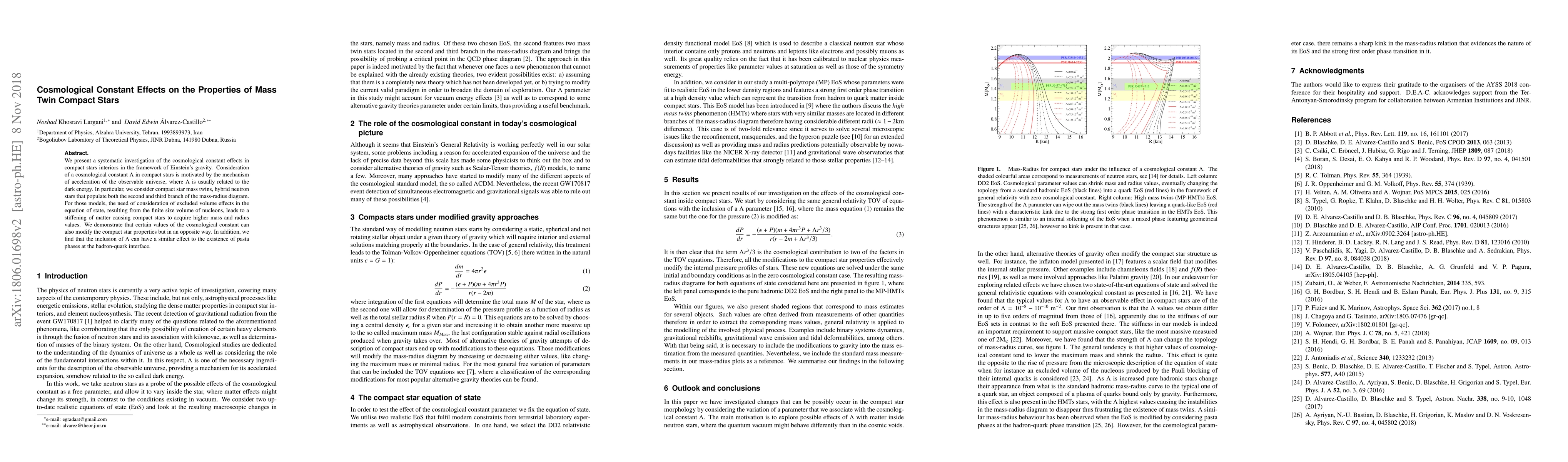 This study explores how a cosmological constant $\Lambda$ influences the properties of mass twin compact stars, particularly hybrid neutron stars. It finds that while excluded volume effects can lead to stiffer matter and larger stars, certain $\Lambda$ values can conversely modify star properties, potentially mimicking the effects of pasta phases at the hadron-quark boundary.