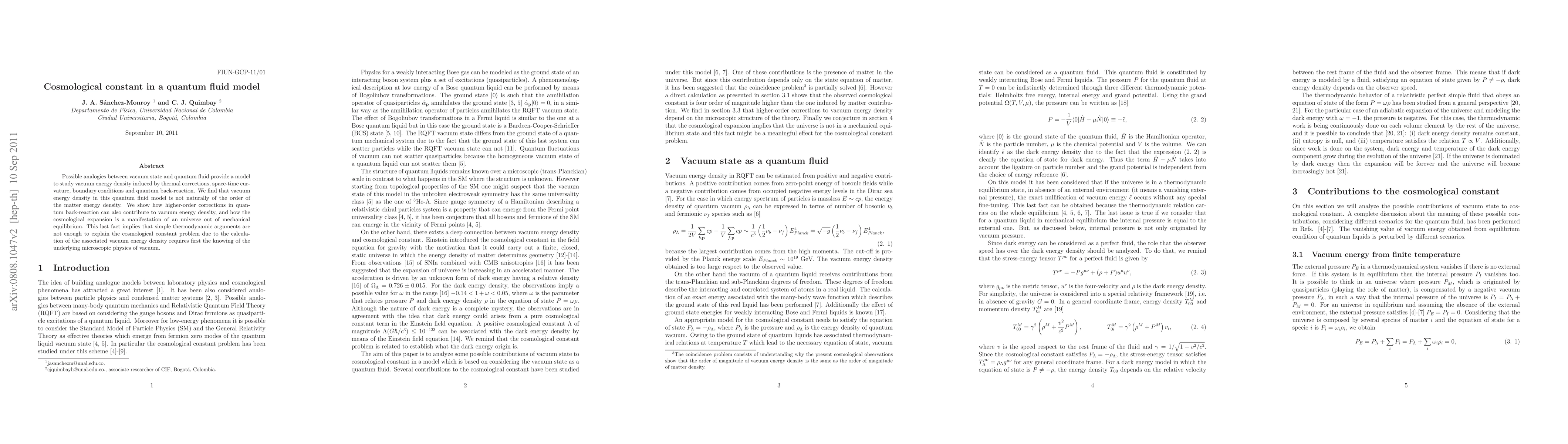 This paper explores analogies between vacuum state and quantum fluid to study vacuum energy density, finding that it's not naturally aligned with matter energy density. It highlights that higher-order quantum corrections and cosmological expansion indicate the universe's mechanical disequilibrium, suggesting that the cosmological constant problem requires understanding the microscopic physics of vacuum.