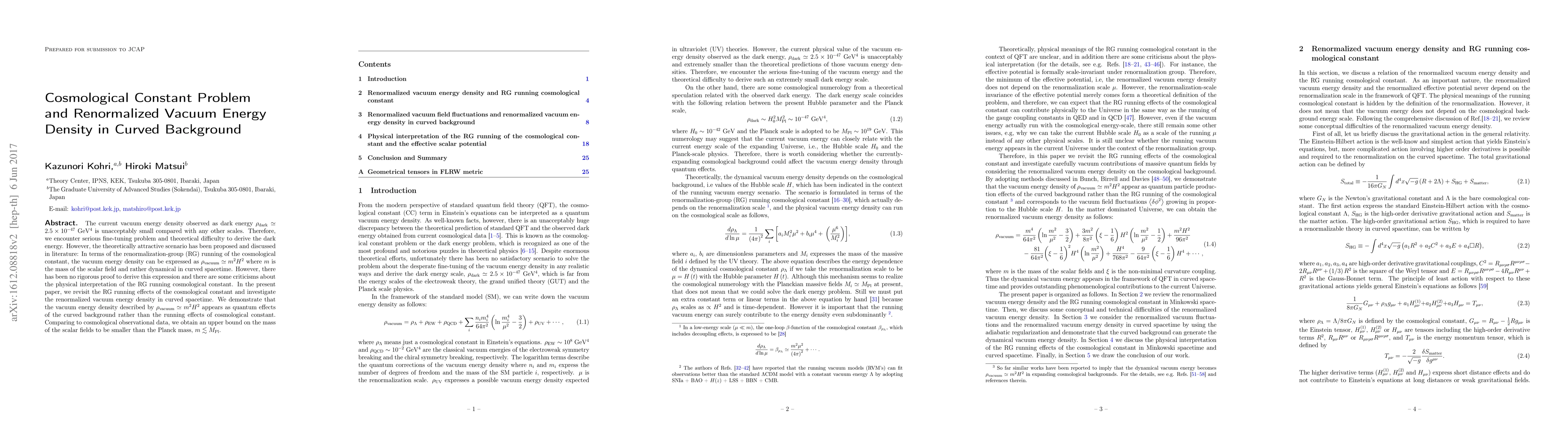 This paper addresses the cosmological constant problem by exploring the renormalized vacuum energy density in curved spacetime. It finds that the vacuum energy density, expressed as ${ \rho }_{ \rm vacuum }\simeq m^{2}H^{2}$, arises from quantum effects rather than the running of the cosmological constant, placing an upper limit on the scalar field mass at $m \lesssim M_{\rm Pl}$.