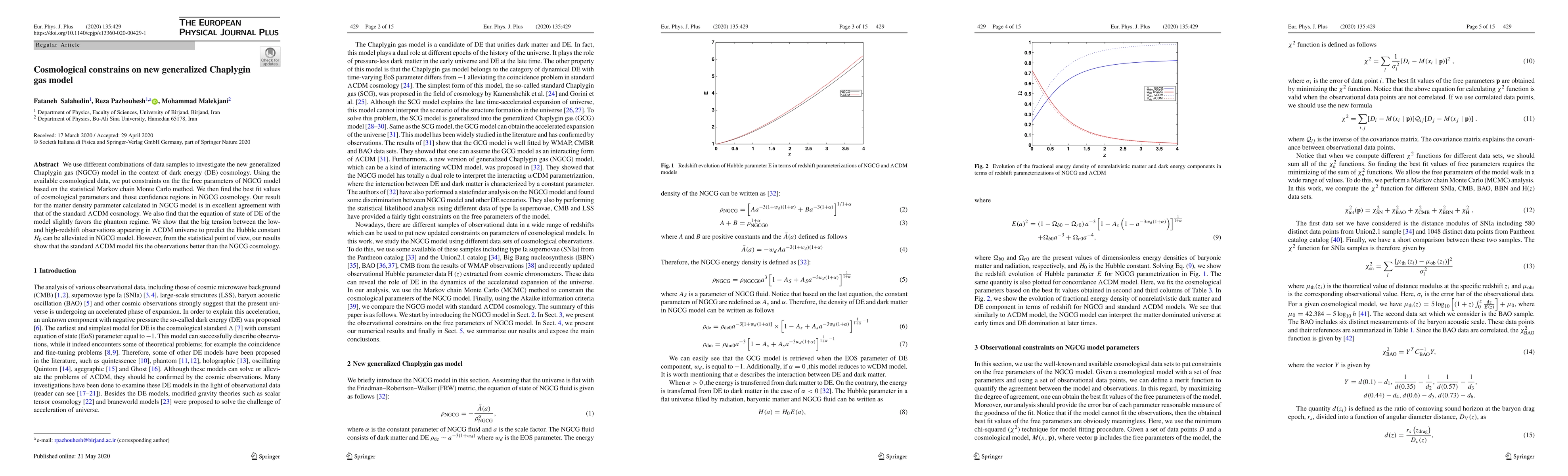 This paper investigates the new generalized Chaplygin gas (NGCG) model for dark energy, constraining its parameters using cosmological data and statistical methods. The NGCG model shows promise in alleviating the Hubble constant tension but ultimately fits observations less well than the standard CDM model.