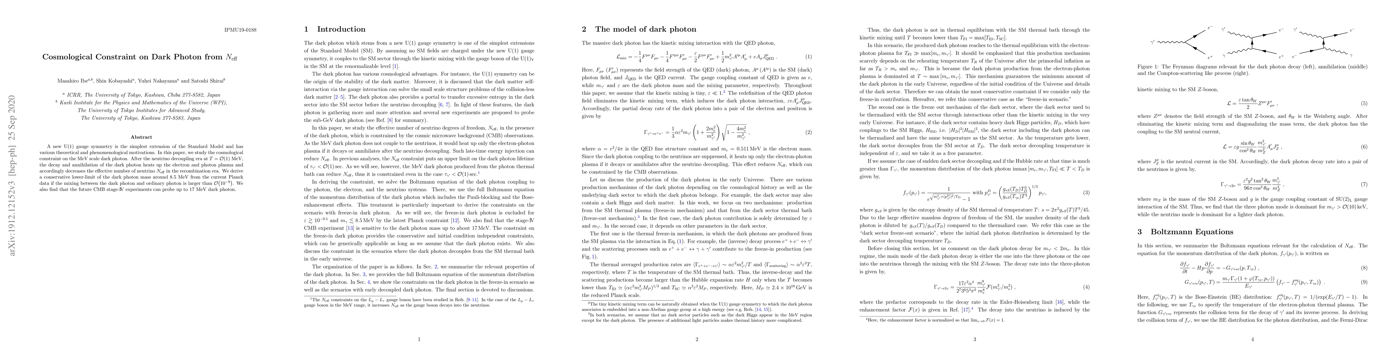 A new U(1) gauge symmetry is the simplest extension of the Standard Model and has various theoretical and phenomenological motivations. In this paper, we study the cosmological constraint on the MeV scale dark photon. After the neutrino decoupling era at $T = \mathcal{O}(1)\,$MeV, the decay and annihilation of the dark photon heats up the electron and photon plasma and accordingly decreases the effective number of neutrino $N_{\mathrm{eff}}$ in the recombination era. We derive a conservative lower-limit of the dark photon mass around 8.5 MeV from the current Planck data if the mixing between the dark photon and ordinary photon is larger than $\mathcal{O}(10^{-9})$. We also find that the future CMB stage-$\rm I\! V$ experiments can probe up to 17 MeV dark photon.