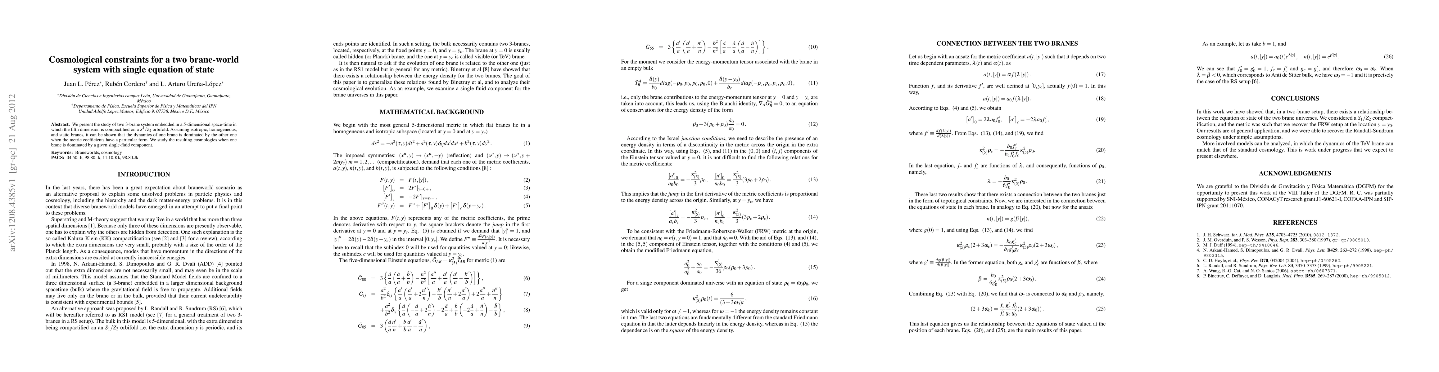 We present the study of two 3-brane system embedded in a 5-dimensional space-time in which the fifth dimension is compactified on a $S^{1}/Z_{2}$ orbifold. Assuming isotropic, homogeneous, and static branes, it can be shown that the dynamics of one brane is dominated by the other one when the metric coefficients have a particular form. We study the resulting cosmologies when one brane is dominated by a given single-fluid component.