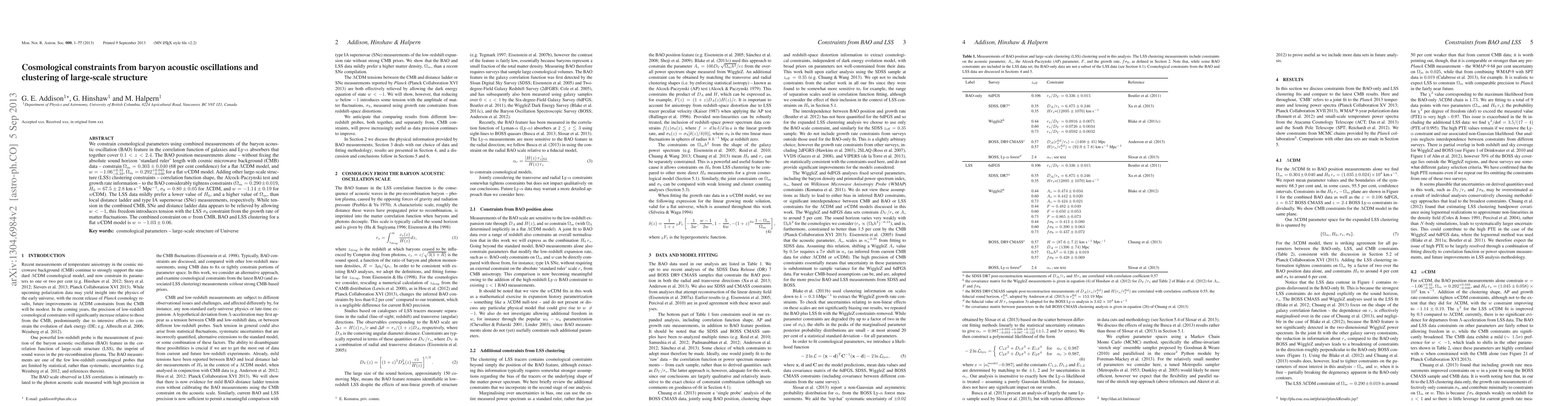 This paper uses baryon acoustic oscillation (BAO) measurements and large-scale structure (LSS) clustering to constrain cosmological parameters, finding Ω_m = 0.290 ± 0.019 and H_0 = 67.5 ± 2.8 km s^{-1} Mpc^{-1} for a ΛCDM model. The study reveals mild tension between LSS data and local measurements, and while allowing for w < -1 alleviates some CMB-SNe-distance ladder tensions, it introduces conflict with LSS growth rate constraints.