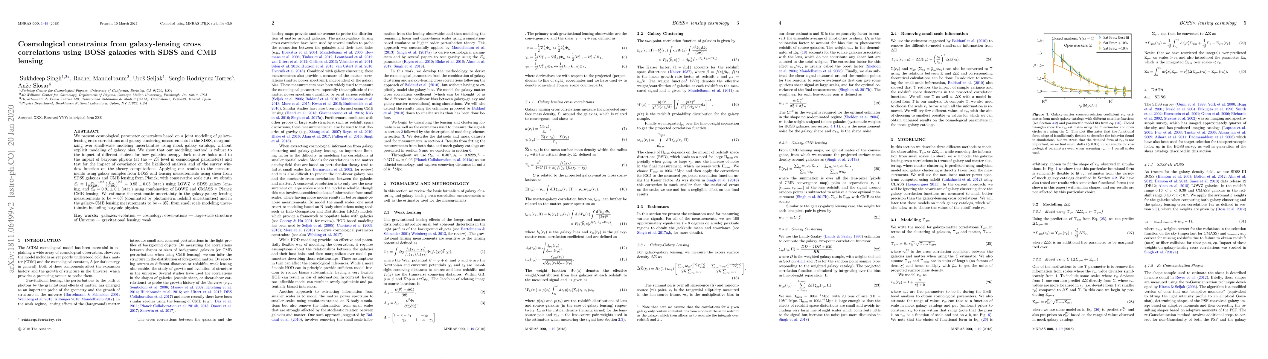 This paper presents cosmological parameter constraints from galaxy-lensing cross correlations and galaxy clustering in the SDSS, combined with CMB lensing data from Planck. The study finds $S_8 \approx 0.85 \pm 0.05$ from LOWZ $\times$ SDSS galaxy lensing and $S_8 \approx 0.91 \pm 0.1$ from LOWZ and CMASS $\times$ Planck CMB lensing, with systematic uncertainties of $\sim6\%$ and $\sim3\%$ respectively.