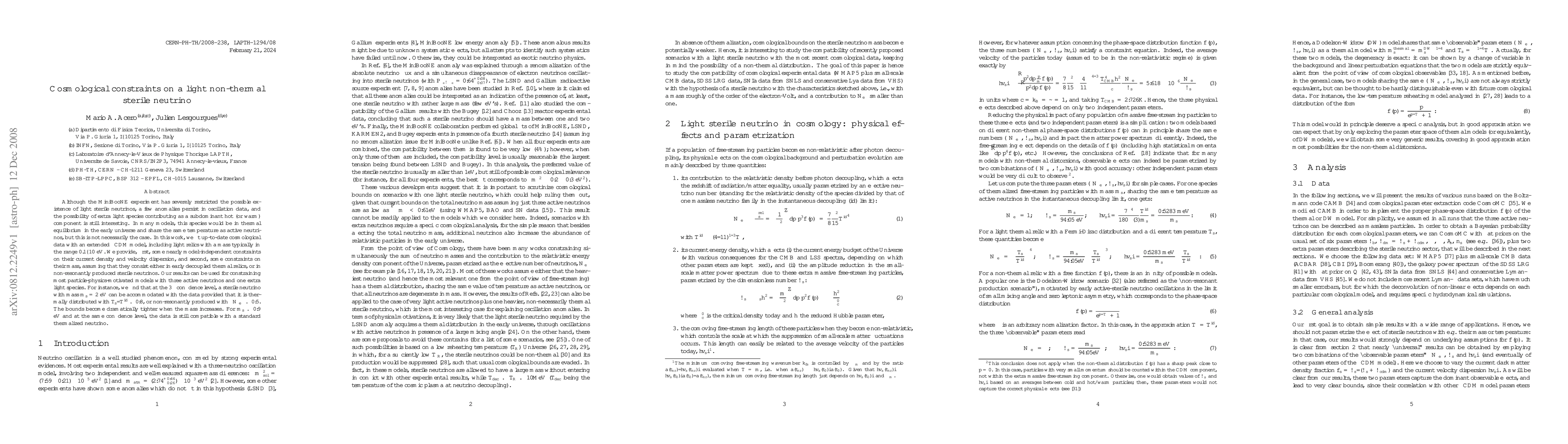 This paper explores cosmological constraints on light non-thermal sterile neutrinos, providing nearly model-independent limits on their density and velocity dispersion. It finds that a sterile neutrino with a mass of 2 eV can fit the data if it is thermally distributed or non-resonantly produced, but constraints tighten significantly with increasing mass.