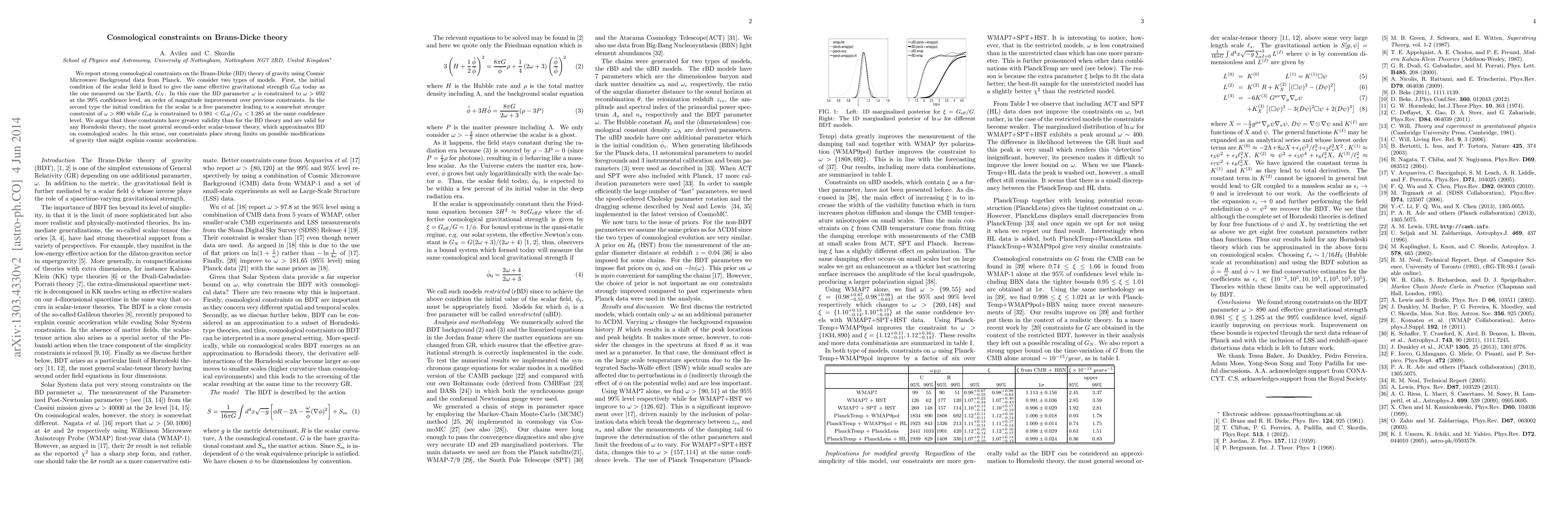 We report strong cosmological constraints on the Brans-Dicke (BD) theory of gravity using Cosmic Microwave Background data from Planck.We consider two types of models. First, the initial condition of the scalar field is fixed to give the same effective gravitational strength $G_{eff}$ today as the one measured on the Earth, $G_N$. In this case the BD parameter $\omega$ is constrained to $\omega > 692$ at the $99\%$ confidence level, an order of magnitude improvement over previous constraints.In the second type the initial condition for the scalar is a free parameter leading to a somewhat stronger constraint of $\omega > 890$ while $G_{eff}$ is constrained to $0.981 <\frac{G_{eff}}{G_N} <1.285$ at the same confidence level. We argue that these constraints have greater validity than for the BD theory and are valid for any Horndeski theory, the most general second-order scalar-tensor theory, which approximates BD on cosmological scales. In this sense, our constraints place strong limits on possible modifications of gravity that might explain cosmic acceleration.
