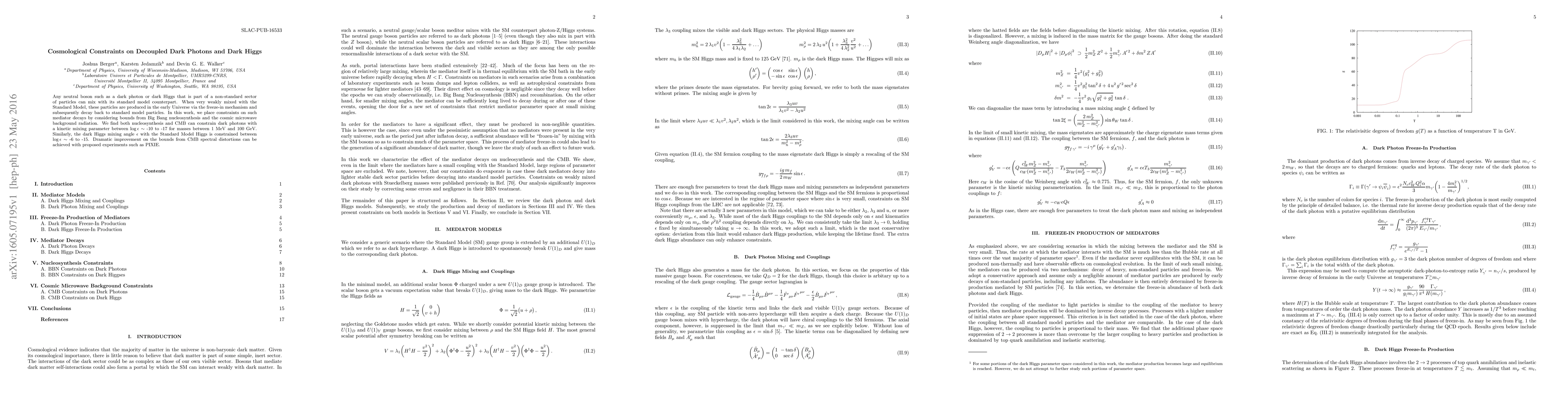 Any neutral boson such as a dark photon or dark Higgs that is part of a non-standard sector of particles can mix with its standard model counterpart. When very weakly mixed with the Standard Model, these particles are produced in the early Universe via the freeze-in mechanism and subsequently decay back to standard model particles. In this work, we place constraints on such mediator decays by considering bounds from Big Bang nucleosynthesis and the cosmic microwave background radiation. We find both nucleosynthesis and CMB can constrain dark photons with a kinetic mixing parameter between log {\epsilon} ~ -10 to -17 for masses between 1 MeV and 100 GeV. Similarly, the dark Higgs mixing angle {\epsilon} with the Standard Model Higgs is constrained between log {\epsilon} ~ -6 to -15. Dramatic improvement on the bounds from CMB spectral distortions can be achieved with proposed experiments such as PIXIE.