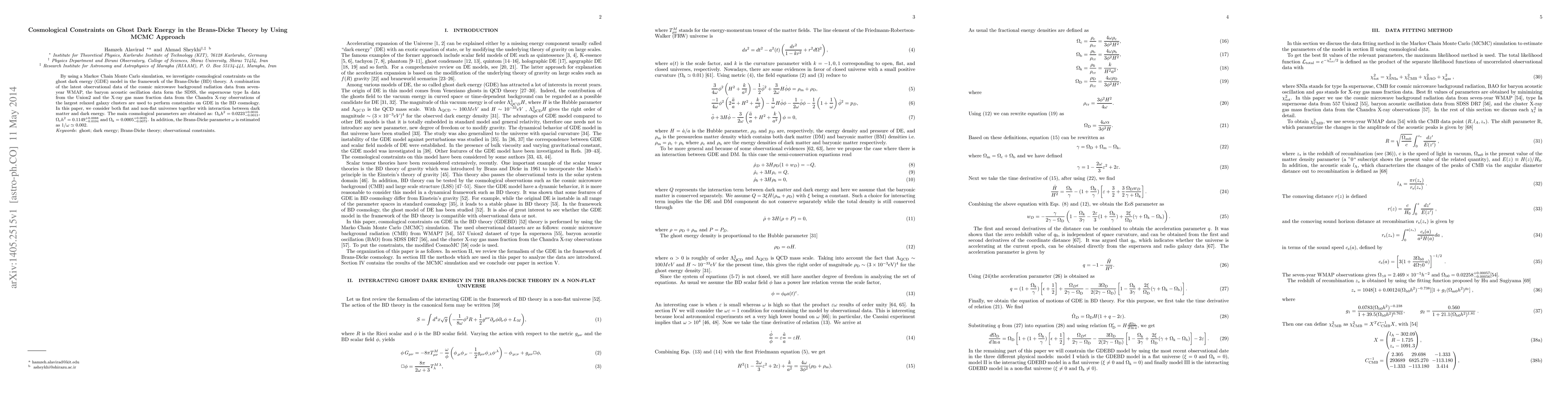 This paper uses a Markov Chain Monte Carlo simulation to explore cosmological constraints on ghost dark energy within the Brans-Dicke theory, combining multiple observational datasets. The study finds the main cosmological parameters and estimates the Brans-Dicke parameter $\omega$ to be approximately $1/\omega\simeq 0.002$.