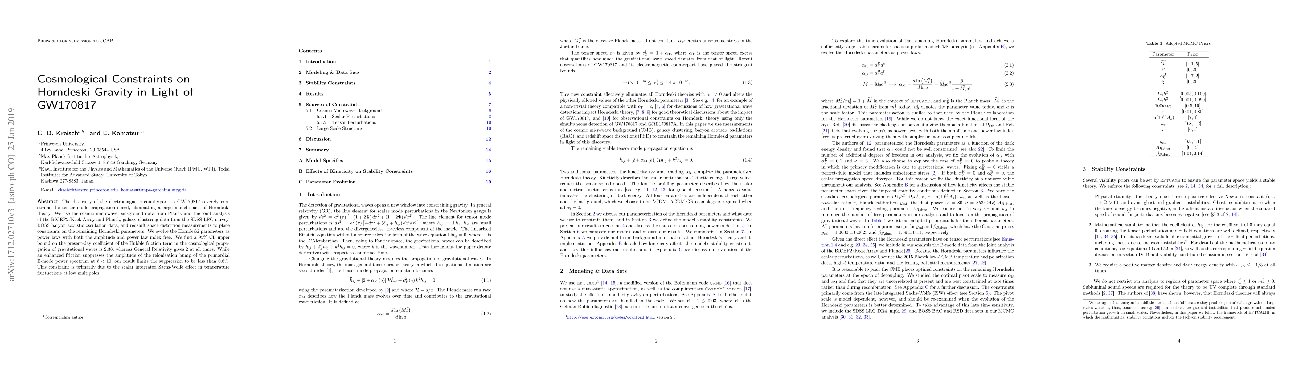 This paper uses data from GW170817, Planck, and galaxy surveys to constrain Horndeski gravity parameters, finding a 95% CL upper bound on the Hubble friction term coefficient at 2.38, significantly limiting deviations from General Relativity. The study also restricts the suppression of the reionization bump in the primordial B-mode power spectrum to less than 0.8%.