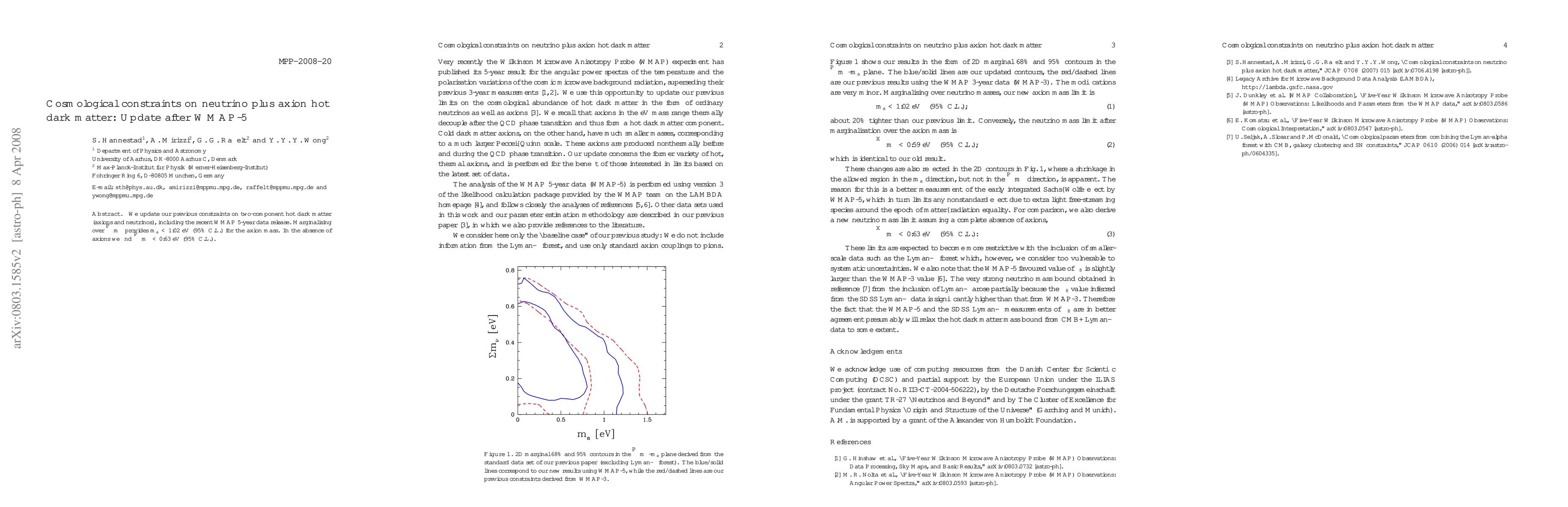 New research updates constraints on axion and neutrino hot dark matter, finding an upper limit of 1.02 eV for axion mass when combined with neutrinos.