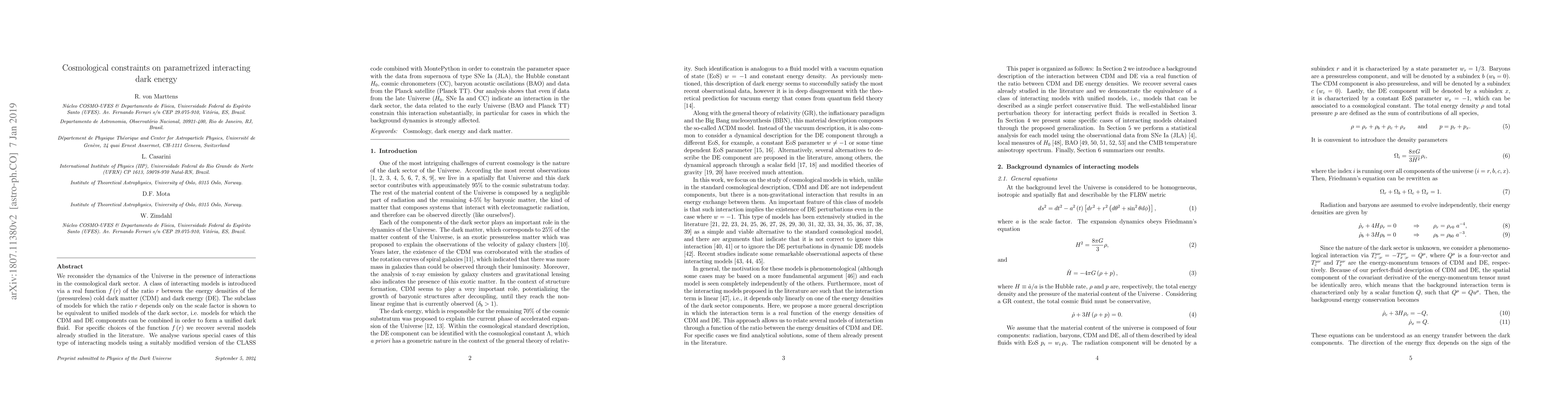 We reconsider the dynamics of the Universe in the presence of interactions in the cosmological dark sector. A class of interacting models is introduced via a real function $f\left(r\right)$ of the ratio $r$ between the energy densities of the (pressureless) cold dark matter (CDM) and dark energy (DE). The subclass of models for which the ratio $r$ depends only on the scale factor is shown to be equivalent to unified models of the dark sector, i.e. models for which the CDM and DE components can be combined in order to form a unified dark fluid. For specific choices of the function $f\left(r\right)$ we recover several models already studied in the literature. We analyse various special cases of this type of interacting models using a suitably modified version of the CLASS code combined with MontePython in order to constrain the parameter space with the data from supernova of type SNe Ia (JLA), the Hubble constant $H_{0}$, cosmic chronometers (CC), baryon acoustic oscilations (BAO) and data from the Planck satellite (Planck TT). Our analysis shows that even if data from the late Universe ($H_{0}$, SNe Ia and CC) indicate an interaction in the dark sector, the data related to the early Universe (BAO and Planck TT) constrain this interaction substantially, in particular for cases in which the background dynamics is strongly affected.