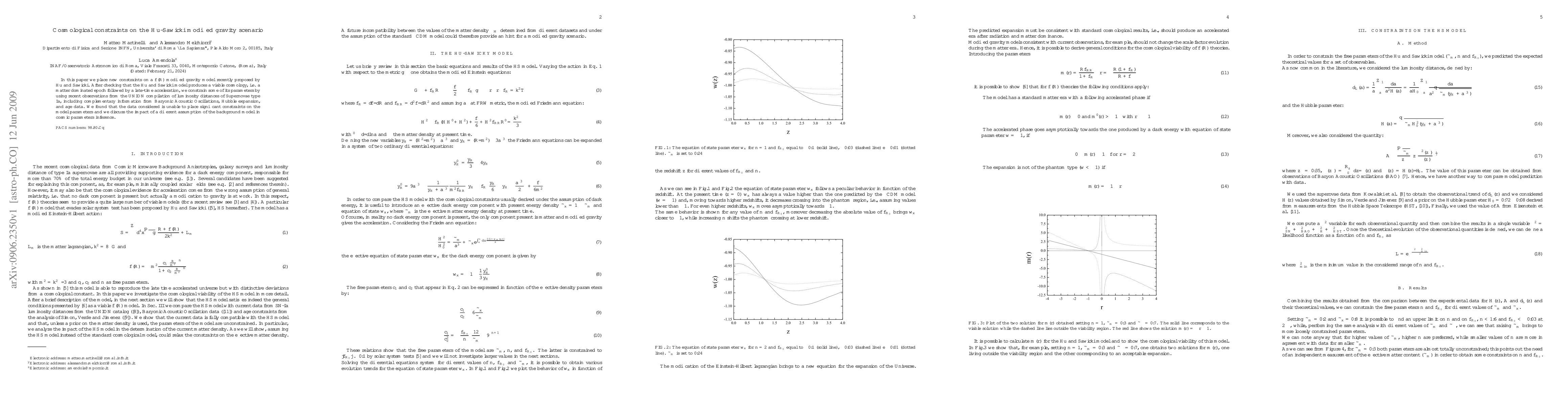 This paper examines the Hu-Sawicki modified gravity model, confirming its viability for a matter-dominated era followed by late-time acceleration. Despite using recent observational data, including supernovae, baryonic acoustic oscillations, and Hubble expansion, the study finds insufficient constraints on the model's parameters.