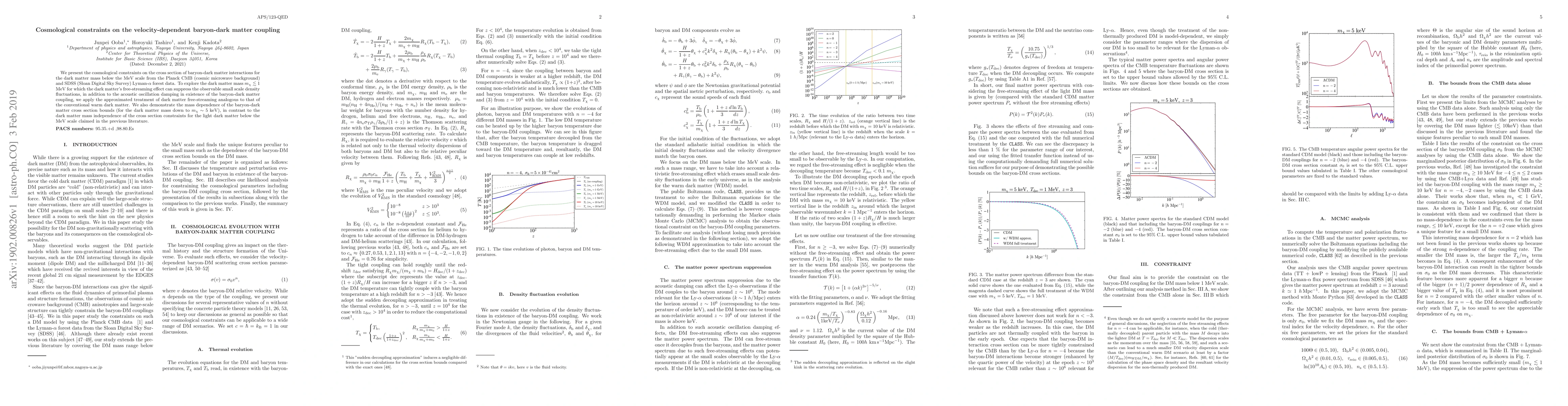 This paper provides cosmological constraints on the baryon-dark matter interaction cross section for dark matter masses below the MeV scale, using Planck CMB and SDSS Lyman-$\alpha$ forest data. It reveals mass-dependent cross section bounds down to 5 keV, challenging previous claims of mass-independent constraints for light dark matter below the MeV scale.