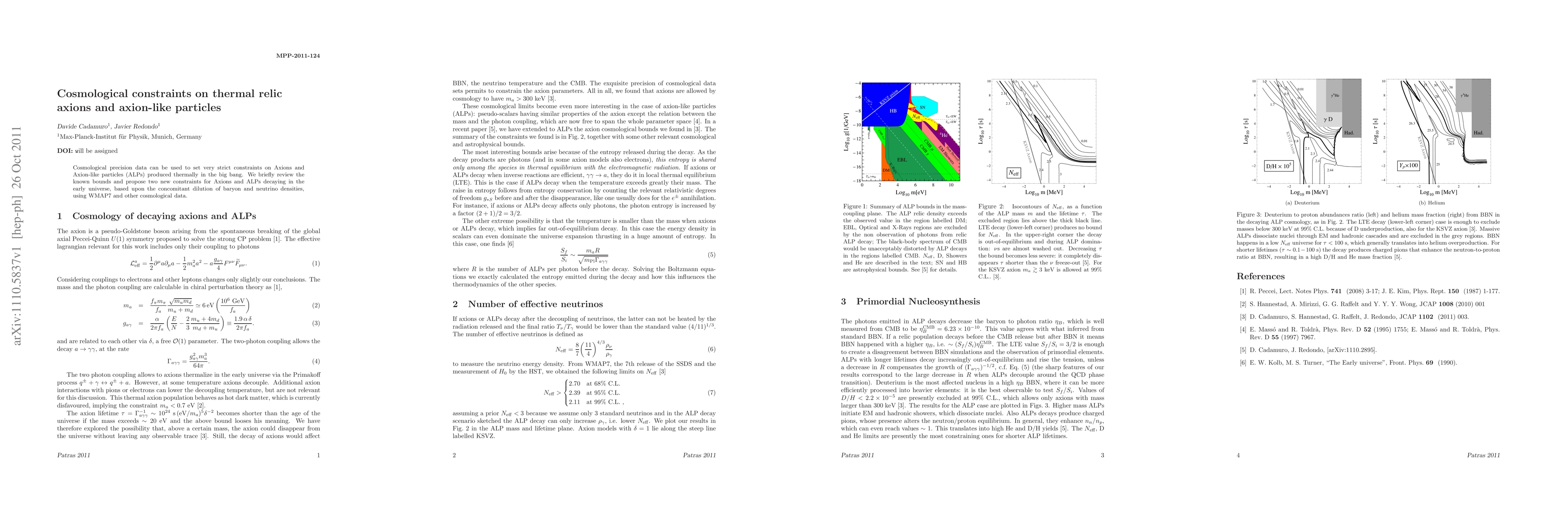 This paper sets stringent cosmological constraints on thermally produced axions and axion-like particles (ALPs) using precision data from the early universe. It proposes two new constraints based on the dilution of baryon and neutrino densities, leveraging WMAP7 and other cosmological observations.