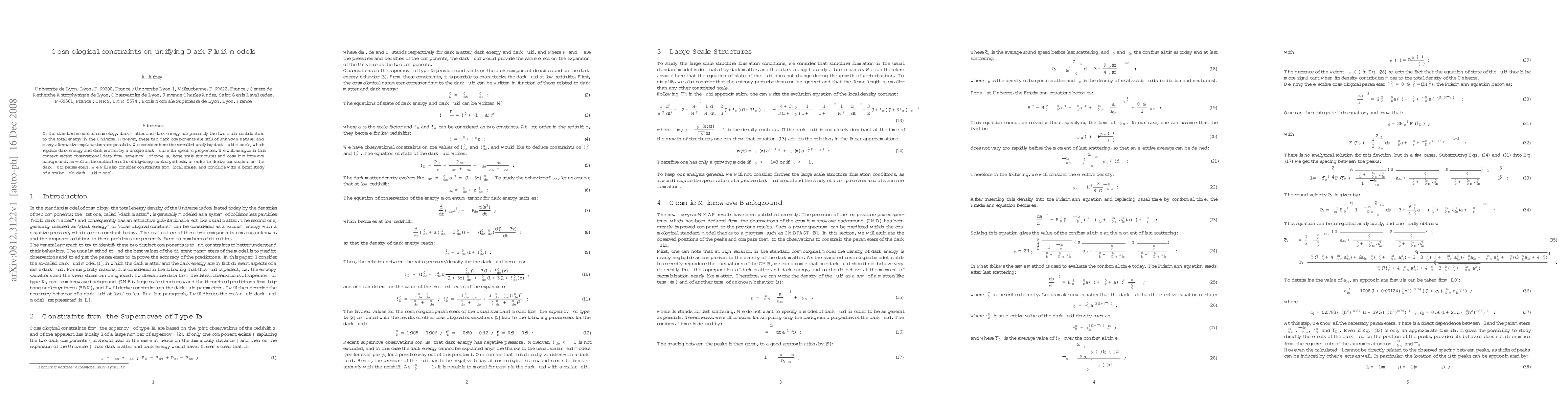 This paper investigates unifying dark fluid models that replace dark matter and dark energy with a single dark fluid, analyzing observational data from supernovae, large scale structures, and cosmic microwave background to derive constraints on its parameters. The study also considers local scale constraints and briefly examines a scalar field dark fluid model.