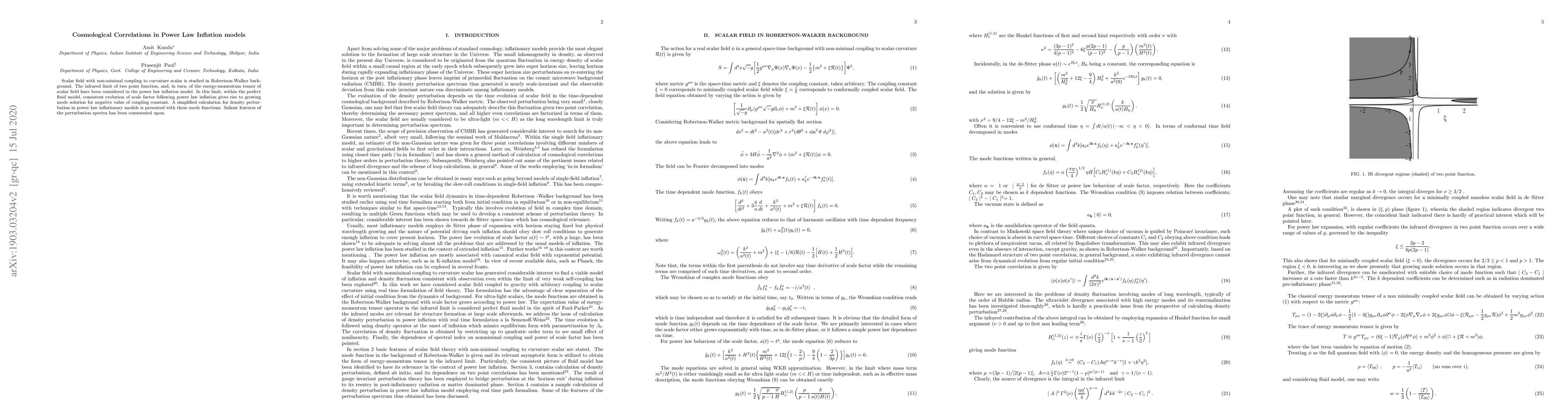Scalar field with non-minimal coupling to curvature scalar is studied in Robertson-Walker background. The infrared limit of two point function, and, in turn, of the energy-momentum tensor of scalar field have been considered in the power law inflation model. In this limit, within the perfect fluid model, consistent evolution of scale factor following power law inflation gives rise to growing mode solution for negative value of coupling constant. A simplified calculation for density perturbation in power law inflationary models is presented with these mode functions. Salient features of the perturbation spectra has been commented upon.