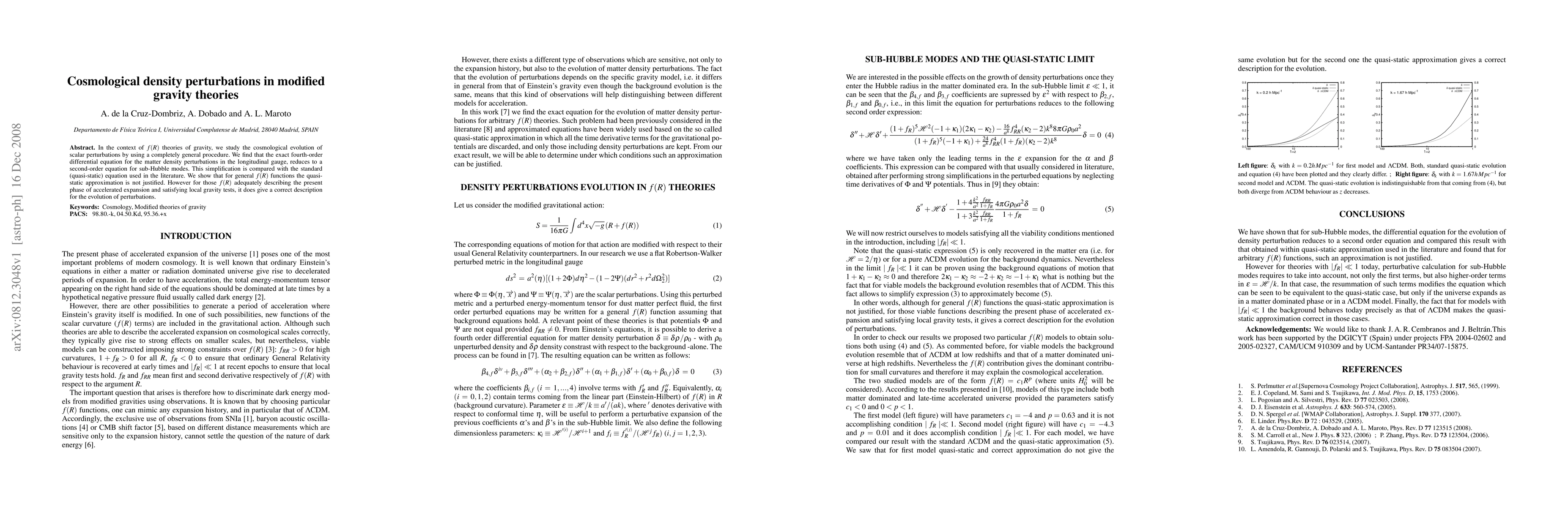 In the context of f(R) theories of gravity, we study the cosmological evolution of scalar perturbations by using a completely general procedure. We find that the exact fourth-order differential equation for the matter density perturbations in the longitudinal gauge, reduces to a second-order equation for sub-Hubble modes. This simplification is compared with the standard (quasi-static) equation used in the literature. We show that for general f(R) functions the quasi-static approximation is not justified. However for those f(R) adequately describing the present phase of accelerated expansion and satisfying local gravity tests, it does give a correct description for the evolution of perturbations.