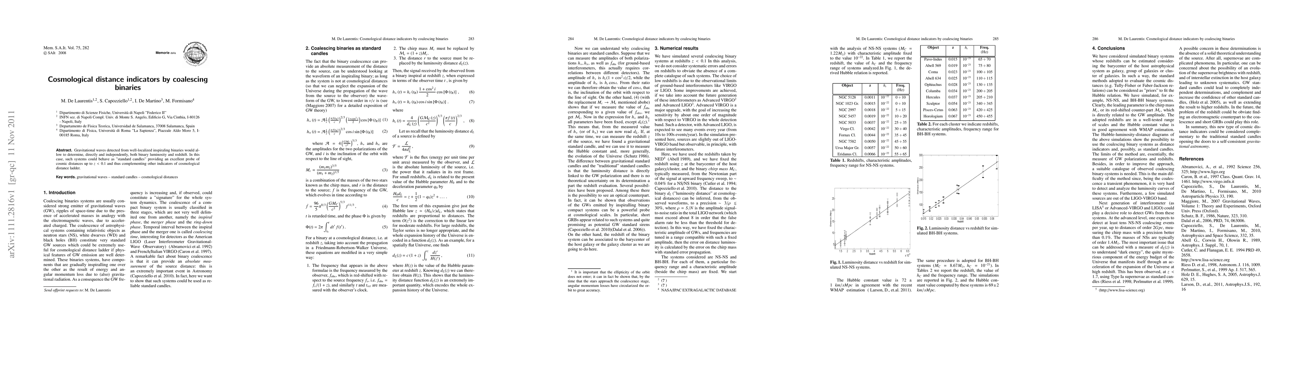 This paper explores the use of gravitational waves from coalescing binary systems as cosmological distance indicators, enabling independent determination of both luminosity and redshift, thus functioning as "standard candles" to measure cosmic distances up to z < 0.1 and enhancing the existing cosmological distance ladder.