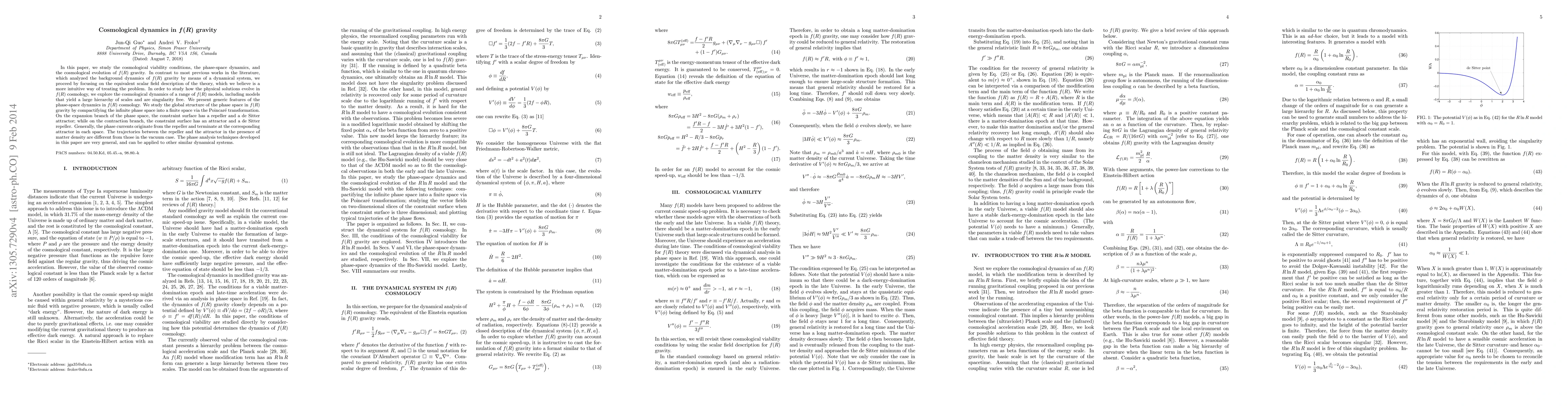 This paper investigates the cosmological dynamics and viability conditions of f(R) gravity using an equivalent scalar field description, revealing phase-space dynamics with repellers and attractors. It explores singularity-free models with a hierarchy of scales and applies general phase analysis techniques to other dynamical systems.