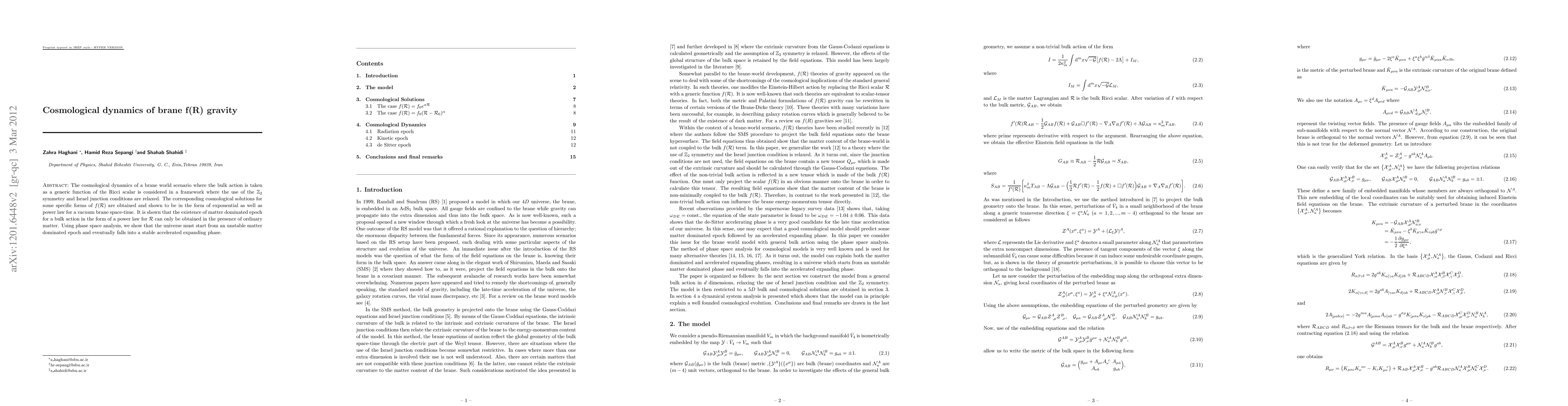 The cosmological dynamics of a brane world scenario where the bulk action is taken as a generic function of the Ricci scalar is considered in a framework where the use of the $\mathbb{Z}_2$ symmetry and Israel junction conditions are relaxed. The corresponding cosmological solutions for some specific forms of $f(\mc{R})$ are obtained and shown to be in the form of exponential as well as power law for a vacuum brane space-time. It is shown that the existence of matter dominated epoch for a bulk action in the form of a power law for $\cal R$ can only be obtained in the presence of ordinary matter. Using phase space analysis, we show that the universe must start from an unstable matter dominated epoch and eventually falls into a stable accelerated expanding phase.