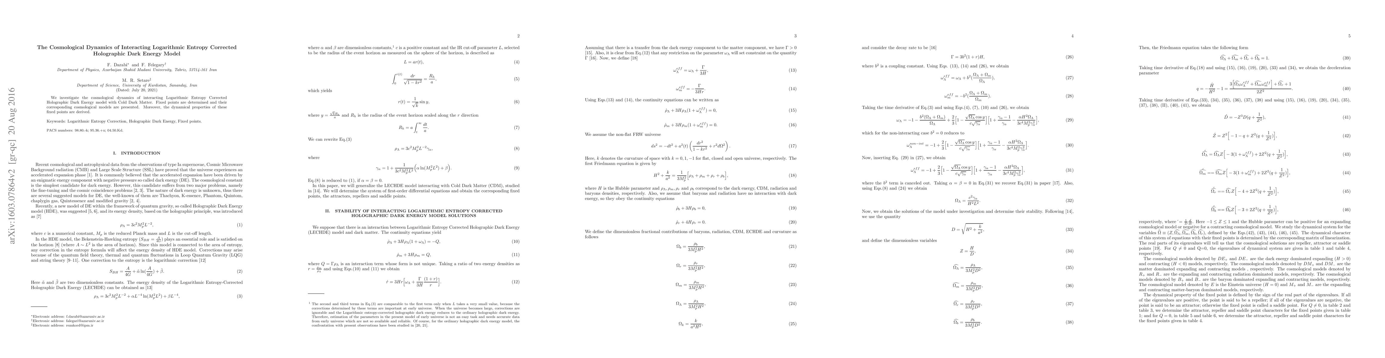 This paper explores the cosmological dynamics of a Logarithmic Entropy Corrected Holographic Dark Energy model interacting with Cold Dark Matter, identifying fixed points and analyzing their dynamical properties to understand the model's behavior.