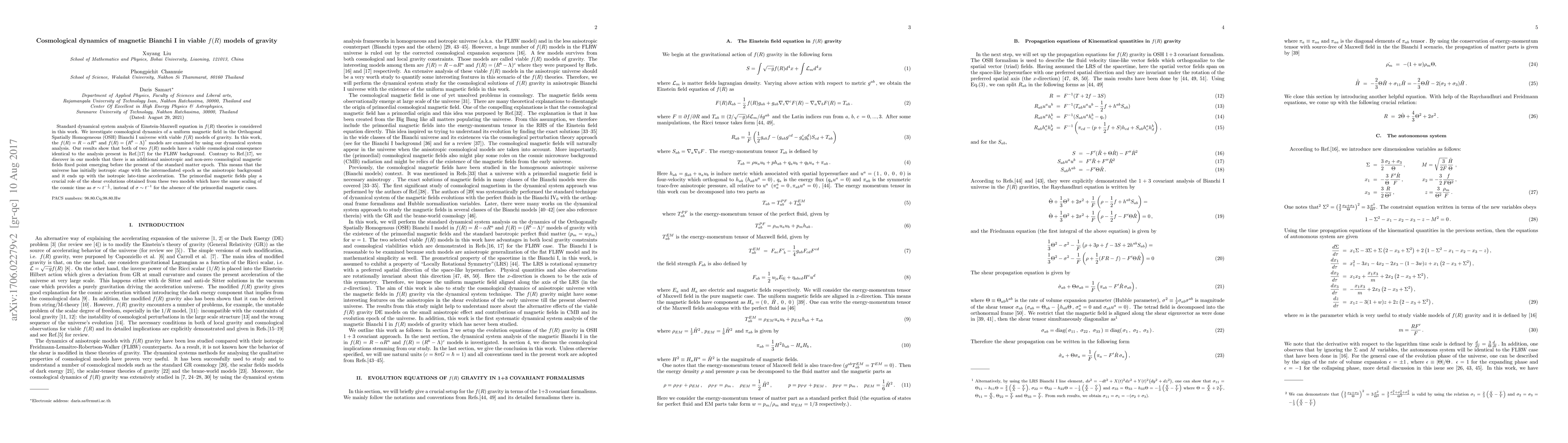 This paper examines the cosmological dynamics of a uniform magnetic field in a Bianchi I universe within viable $f(R)$ gravity models, specifically $f(R) = R -\alpha R^n$ and $f(R) = \left( R^b - \Lambda\right)^c$. It finds an additional anisotropic fixed point with non-zero primordial magnetic fields, leading to an initial isotropic stage followed by an anisotropic epoch before reaching late-time isotropic acceleration.
