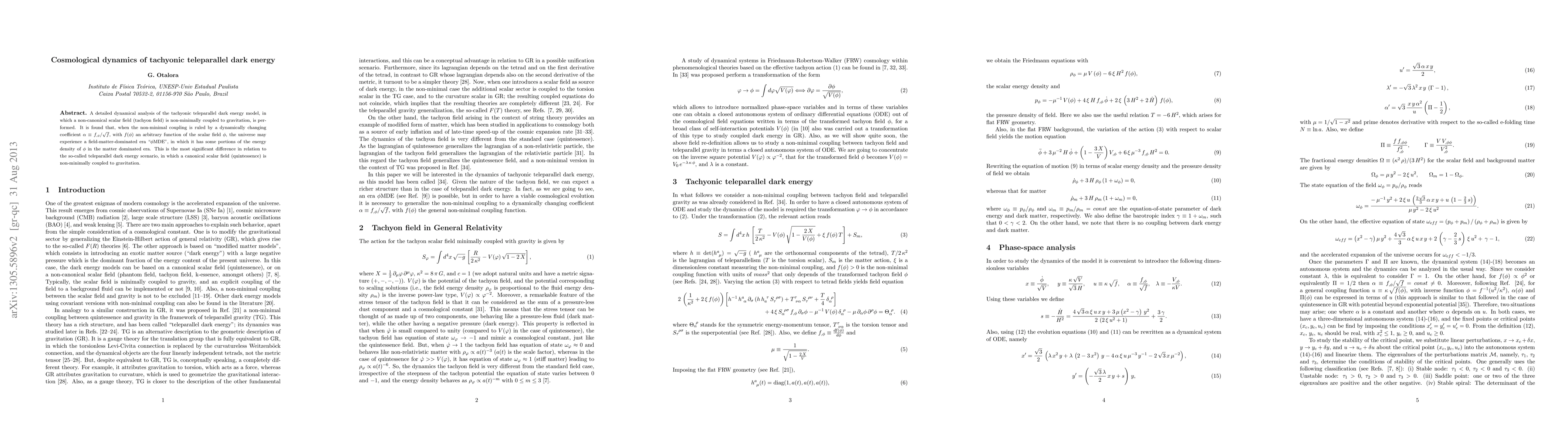 This paper analyzes the dynamics of tachyonic teleparallel dark energy, showing that a non-canonical scalar field can lead to a field-matter-dominated era. Unlike teleparallel dark energy, this model features a dynamically changing coupling coefficient, resulting in unique cosmological implications.