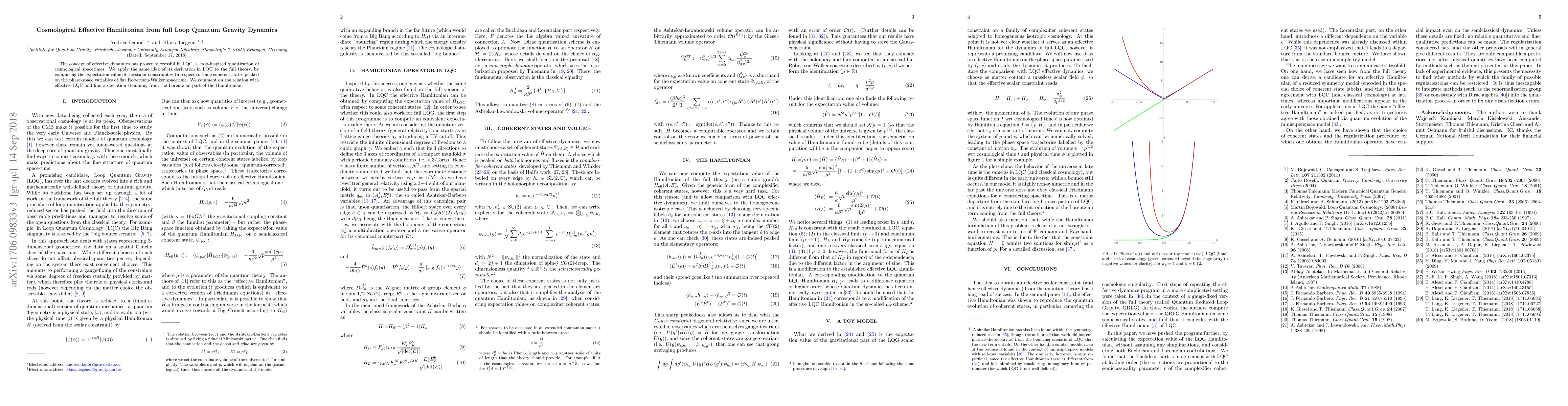The concept of effective dynamics has proven successful in LQC, a loop-inspired quantization of cosmological spacetimes. We apply the same idea of its derivation in LQC to the full theory, by computing the expectation value of the scalar constraint with respect to some coherent states peaked on the phase-space variables of flat Robertson-Walker spacetime. We comment on the relation with effective LQC and find a deviation stemming from the Lorentzian part of the Hamiltonian.