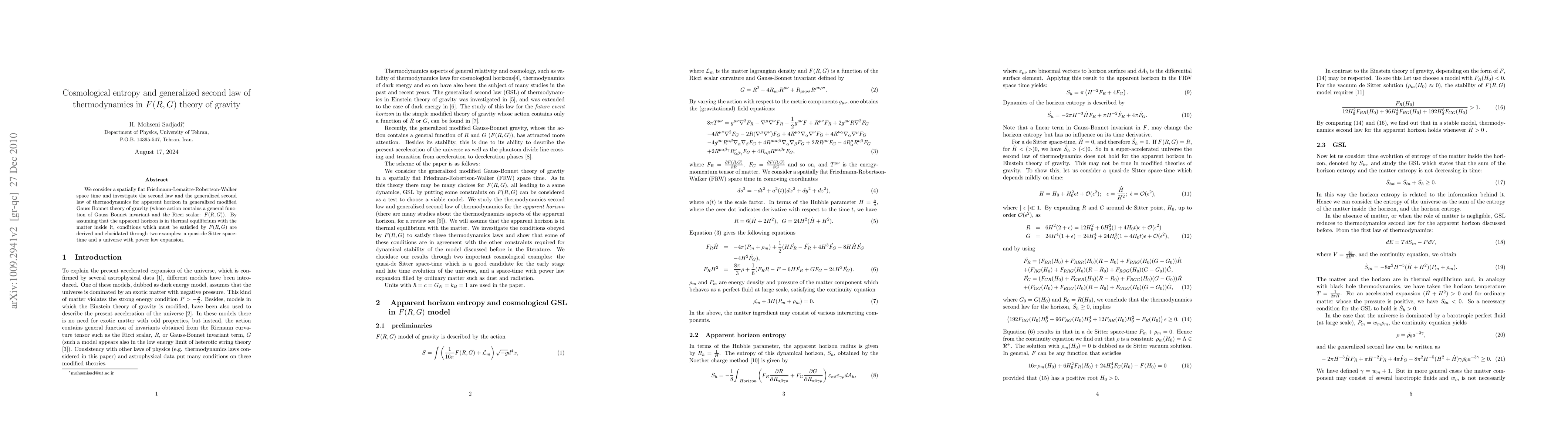 This paper explores the second law and the generalized second law of thermodynamics in $F(R,G)$ gravity, a modified theory of gravity, within a spatially flat Friedmann-Lemaître-Robertson-Walker universe. It derives conditions for thermal equilibrium at the apparent horizon and examines these conditions in quasi-de Sitter and power law expansion scenarios.
