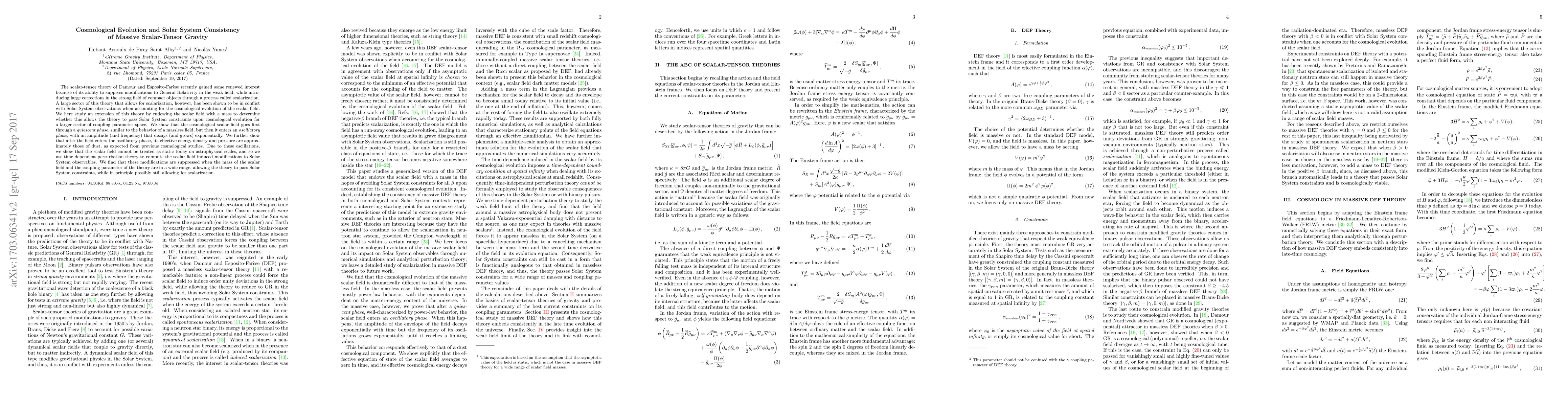 This paper investigates an extension of the scalar-tensor theory of Damour and Esposito-Farèse by introducing a mass to the scalar field to reconcile cosmological evolution with Solar System constraints. The study finds that the scalar field undergoes an oscillatory phase with decaying amplitude and growing frequency, leading to effective energy density and pressure akin to dust, and concludes that the scalar field's modifications to Solar System observables are suppressed in a wide range of parameters, thus potentially allowing for both cosmological consistency and scalarization.