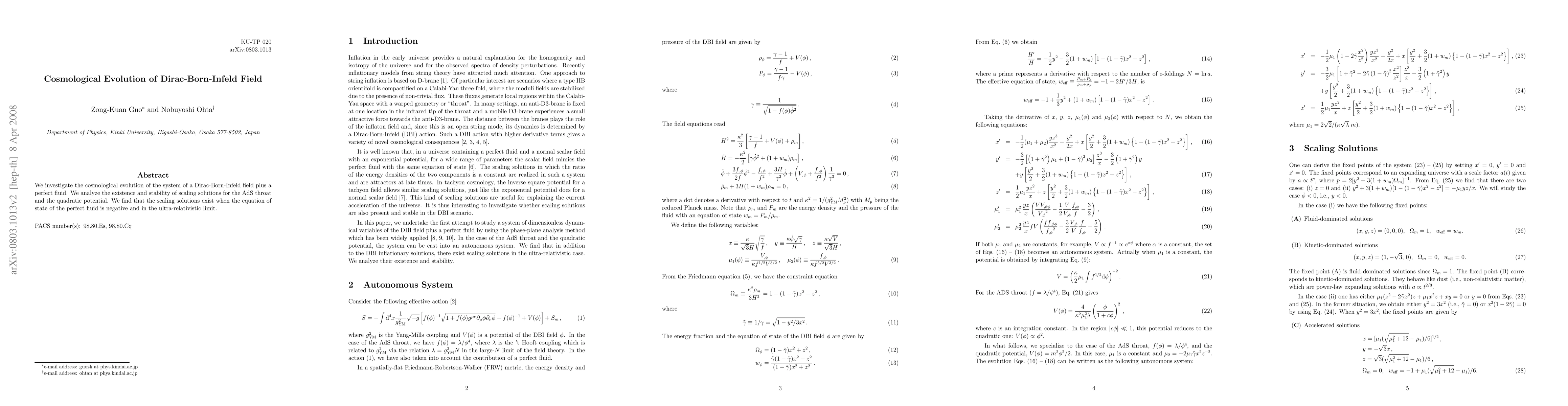 Researchers investigate the evolution of a Dirac-Born-Infeld field combined with a perfect fluid, finding that scaling solutions exist under specific conditions, particularly when the fluid's equation of state is negative in the ultra-relativistic limit.
