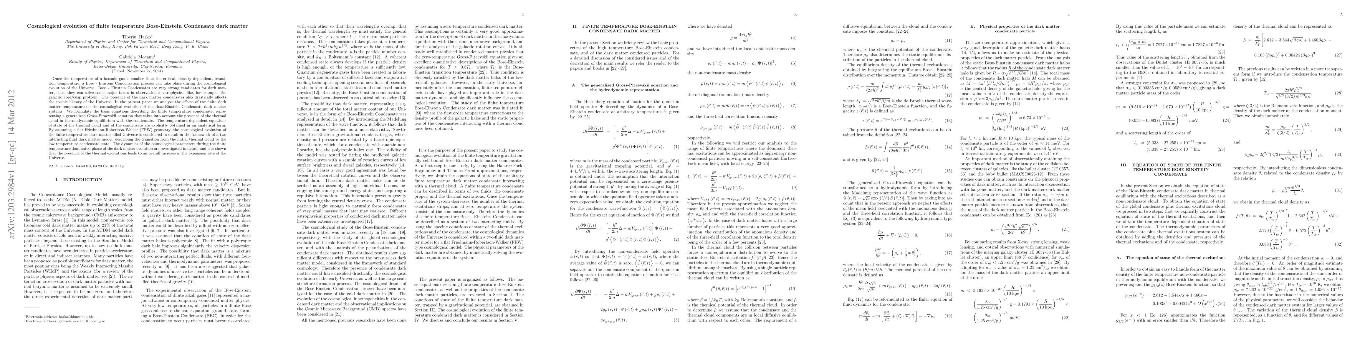 This research examines the cosmological evolution of Bose-Einstein Condensate (BEC) dark matter under finite temperature conditions. It formulates generalized Gross-Pitaevskii equations for BEC dark matter, showing that thermal excitations increase the Universe's expansion rate, potentially solving galactic core/cusp problems.