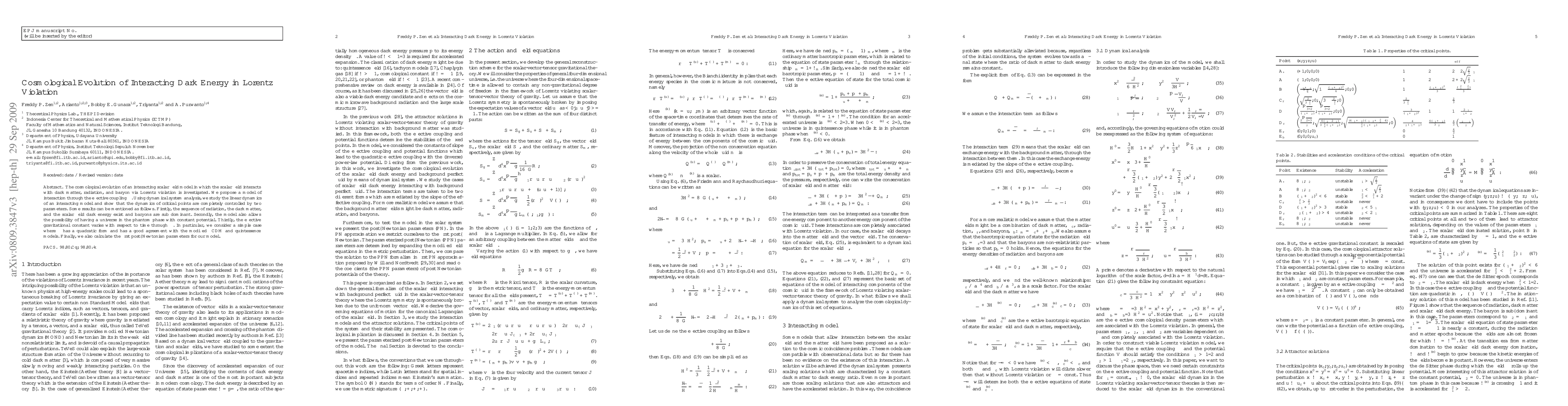 The paper proposes an interacting scalar field model with Lorentz violation, providing a dynamical system analysis and calculating first post-Newtonian parameters.