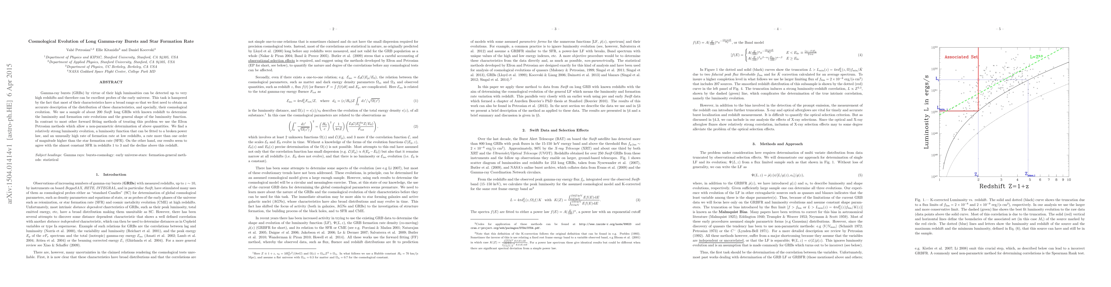 Researchers analyzed 200 long gamma-ray bursts to study their luminosity and formation rate evolution, finding a strong luminosity change and unusually high star formation rates at low redshifts.