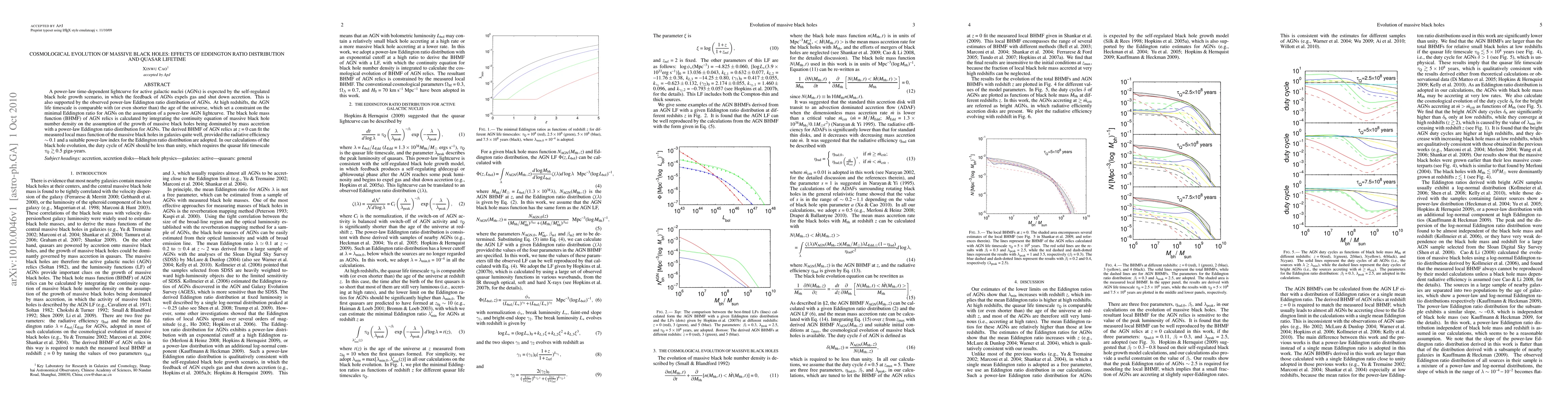 This paper explores the cosmological evolution of massive black holes, focusing on the impact of Eddington ratio distribution and quasar lifetime. It finds that a power-law Eddington ratio distribution and a quasar life timescale greater than 0.5 giga-years can explain the black hole mass function at z=0, aligning with observed data.