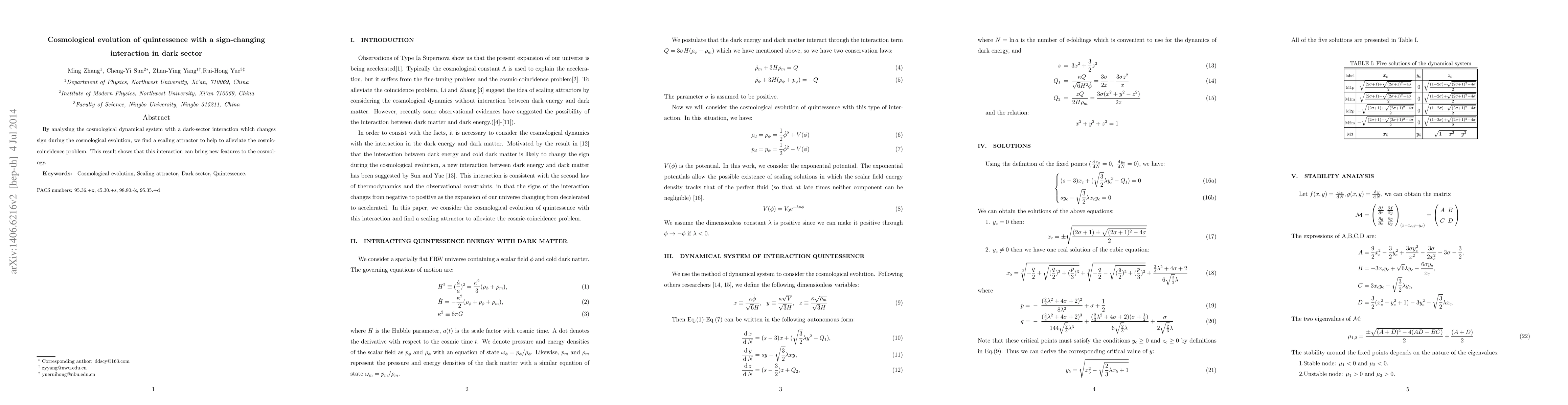 Summary: This paper investigates a cosmological model with a sign-changing interaction in the dark sector, revealing a scaling attractor that alleviates the cosmic-coincidence problem and introduces novel features to cosmological evolution.