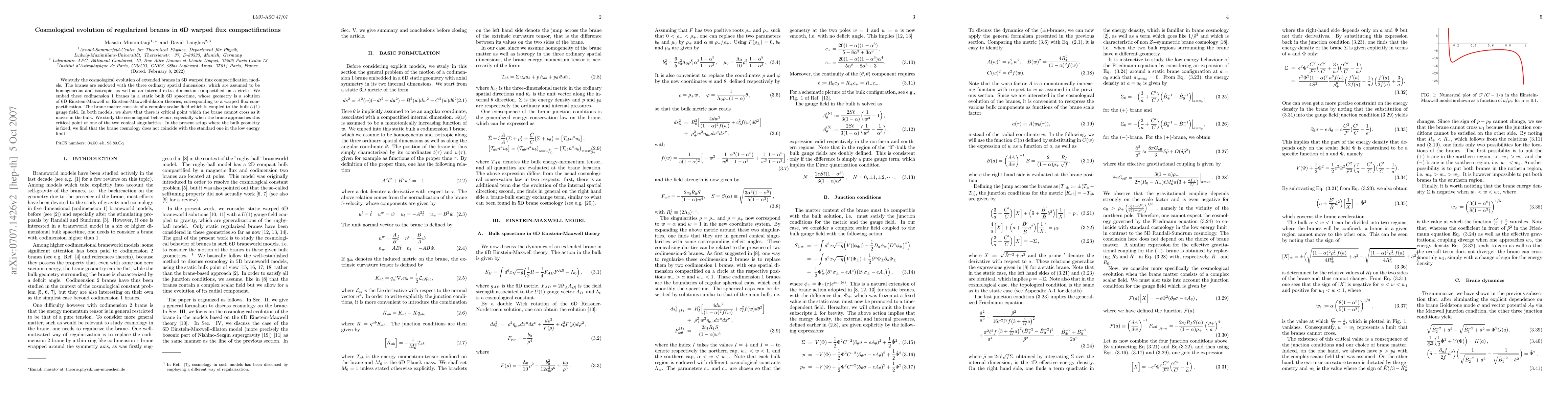 This paper investigates the cosmological evolution of branes in 6D warped flux compactifications, focusing on the behavior near critical points and conical singularities. The branes are embedded in a static 6D bulk spacetime governed by Einstein-Maxwell or Einstein-Maxwell-dilaton theories, and the study reveals that the brane cosmology diverges from the standard model in the low energy limit.