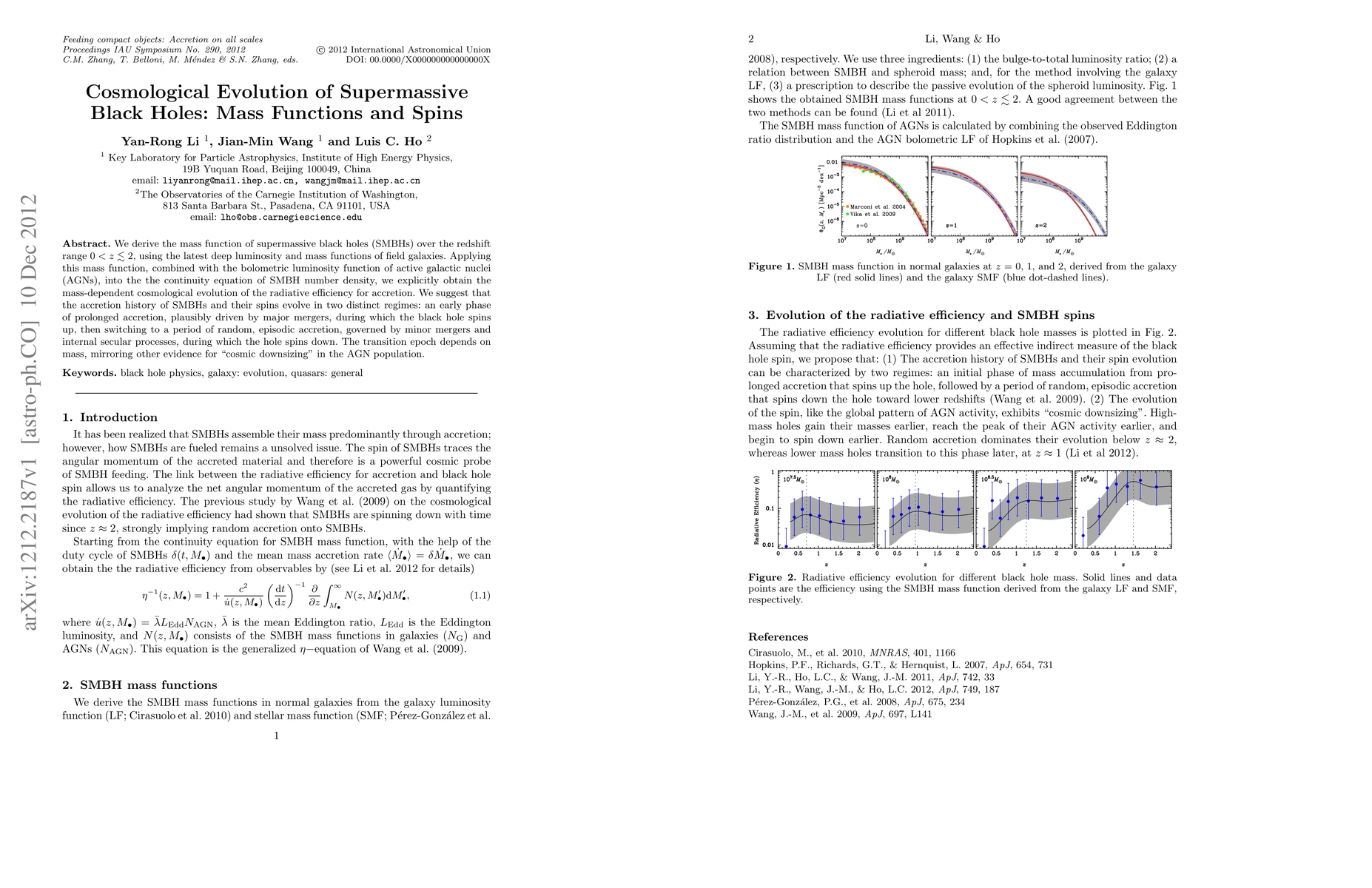 This paper derives the mass function of supermassive black holes (SMBHs) from 0<z<2 and explores their cosmological evolution, finding two distinct accretion regimes: an early phase of spin-up via major mergers and a later phase of spin-down through minor mergers and secular processes. The transition epoch varies with black hole mass, reflecting "cosmic downsizing."