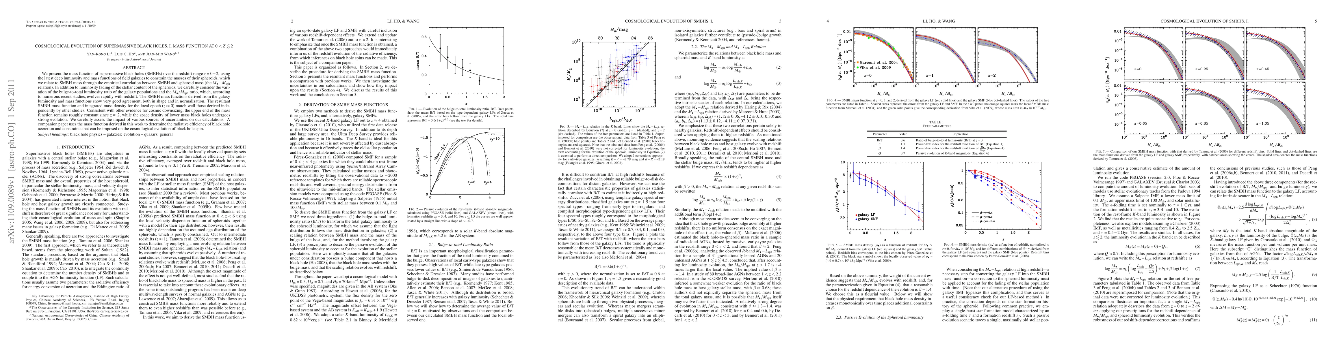 This paper presents the mass function of supermassive black holes (SMBHs) from redshift 0 to 2, using galaxy luminosity and mass functions to derive SMBH masses via the M_bh-M_sph relation. The study finds that while the upper end of the mass function remains stable, lower mass black holes have evolved significantly, consistent with cosmic downsizing.