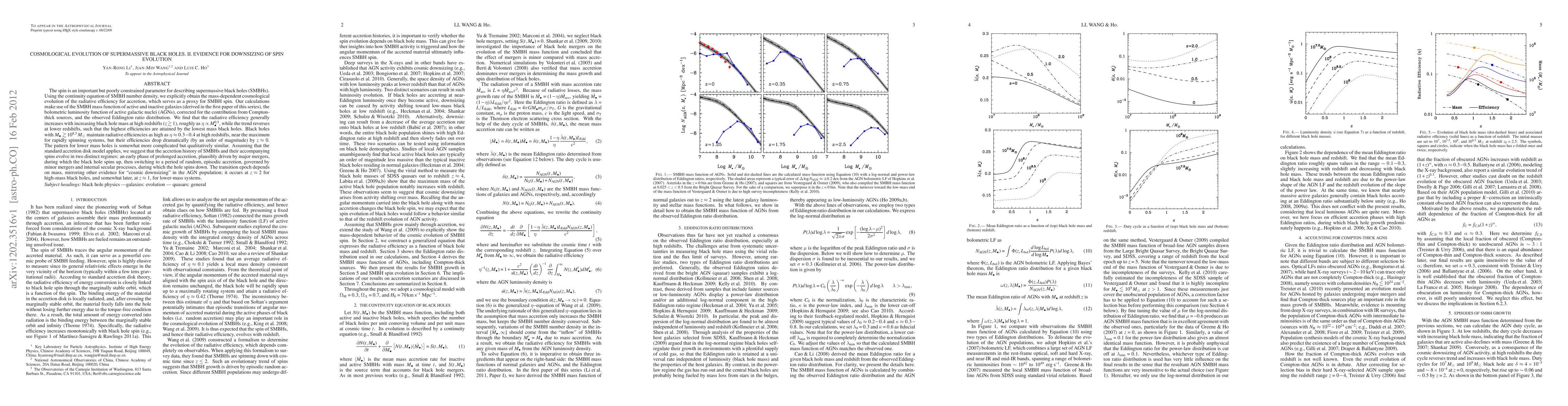 This paper investigates the cosmological evolution of supermassive black hole (SMBH) spin, revealing a trend of "downsizing" in spin evolution. At high redshifts, higher mass black holes exhibit maximum radiative efficiencies, indicative of rapid spin, but these efficiencies drop significantly by lower redshifts. The study suggests that SMBHs transition from prolonged accretion-driven spin-up to episodic spin-down, mirroring the "cosmic downsizing" trend observed in AGN populations.
