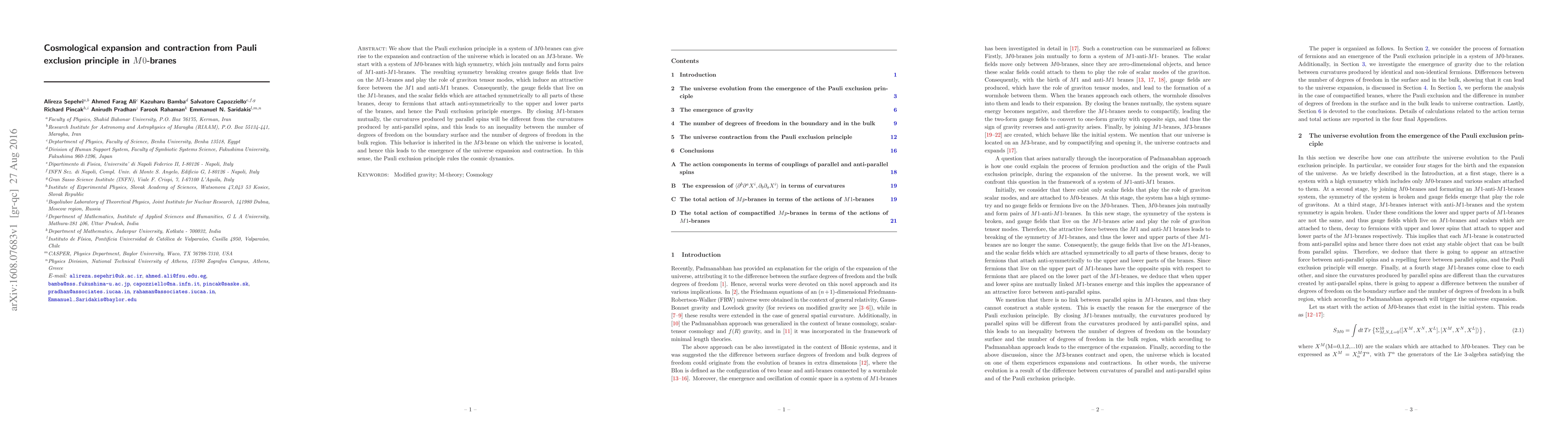 We show that the Pauli exclusion principle in a system of $M0$-branes can give rise to the expansion and contraction of the universe which is located on an $M3$-brane. We start with a system of $M0$-branes with high symmetry, which join mutually and form pairs of $M1$-anti-$M1$-branes. The resulting symmetry breaking creates gauge fields that live on the $M1$-branes and play the role of graviton tensor modes, which induce an attractive force between the $M1$ and anti-$M1$ branes. Consequently, the gauge fields that live on the $M1$-branes, and the scalar fields which are attached symmetrically to all parts of these branes, decay to fermions that attach anti-symmetrically to the upper and lower parts of the branes, and hence the Pauli exclusion principle emerges. By closing $M1$-branes mutually, the curvatures produced by parallel spins will be different from the curvatures produced by anti-parallel spins, and this leads to an inequality between the number of degrees of freedom on the boundary surface and the number of degrees of freedom in the bulk region. This behavior is inherited in the $M3$-brane on which the universe is located, and hence this leads to the emergence of the universe expansion and contraction. In this sense, the Pauli exclusion principle rules the cosmic dynamics.