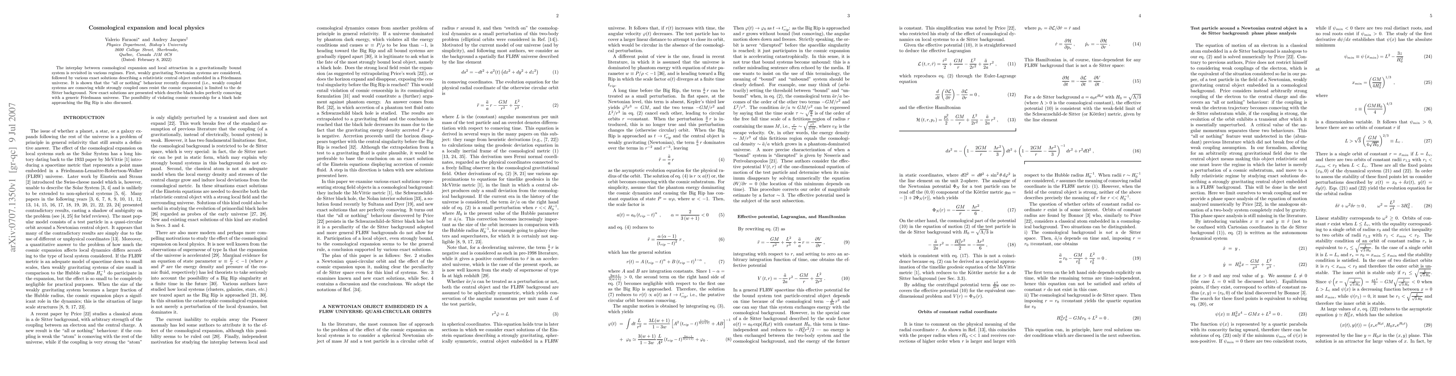 This paper explores the relationship between cosmological expansion and local gravitational systems, demonstrating that weakly coupled systems follow cosmic expansion while strongly coupled ones resist it, but only in a de Sitter background. It introduces new exact solutions for black holes that perfectly co-move with a generic Friedmann universe and discusses the potential for cosmic censorship violation near the Big Rip.