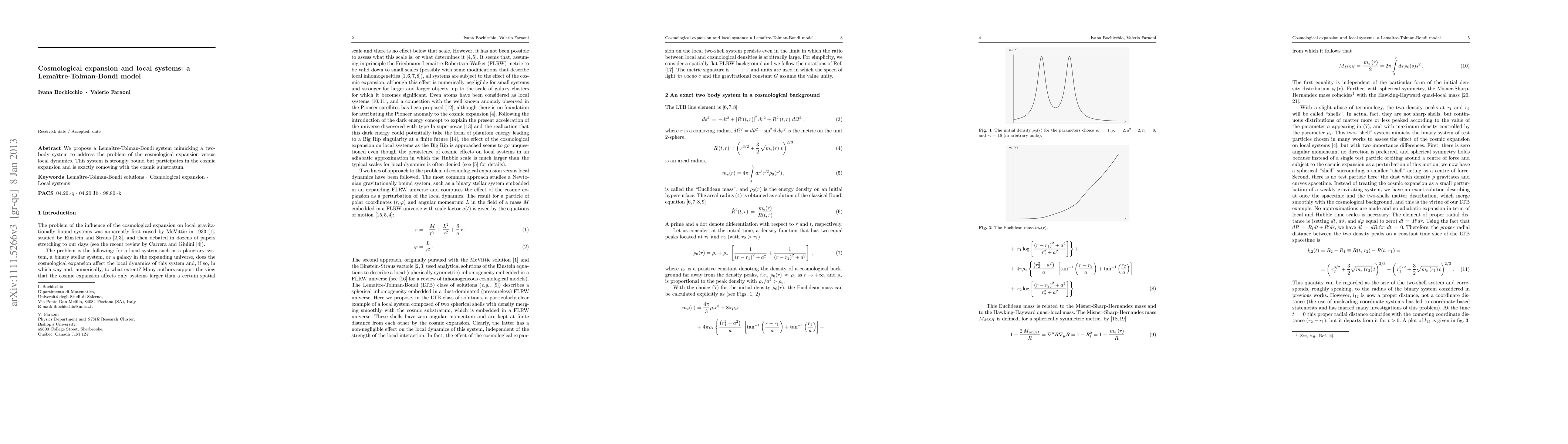 Summary: This paper introduces a Lemaître-Tolman-Bondi model that simulates a two-body system to explore the interplay between cosmological expansion and local dynamics, demonstrating a strongly bound system that still conforms to cosmic expansion.