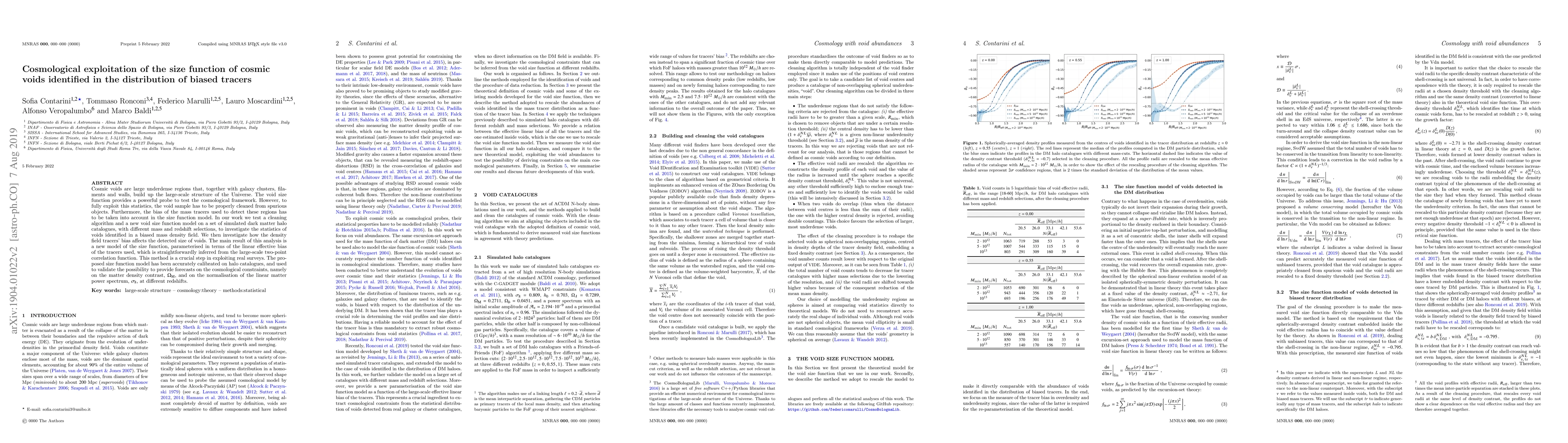 This paper develops a new model for the size function of cosmic voids identified in biased tracers, testing it on simulated dark matter halo catalogues. The model accounts for the bias of mass tracers and is calibrated to provide forecasts on cosmological parameters like matter density contrast and the normalisation of the linear matter power spectrum.