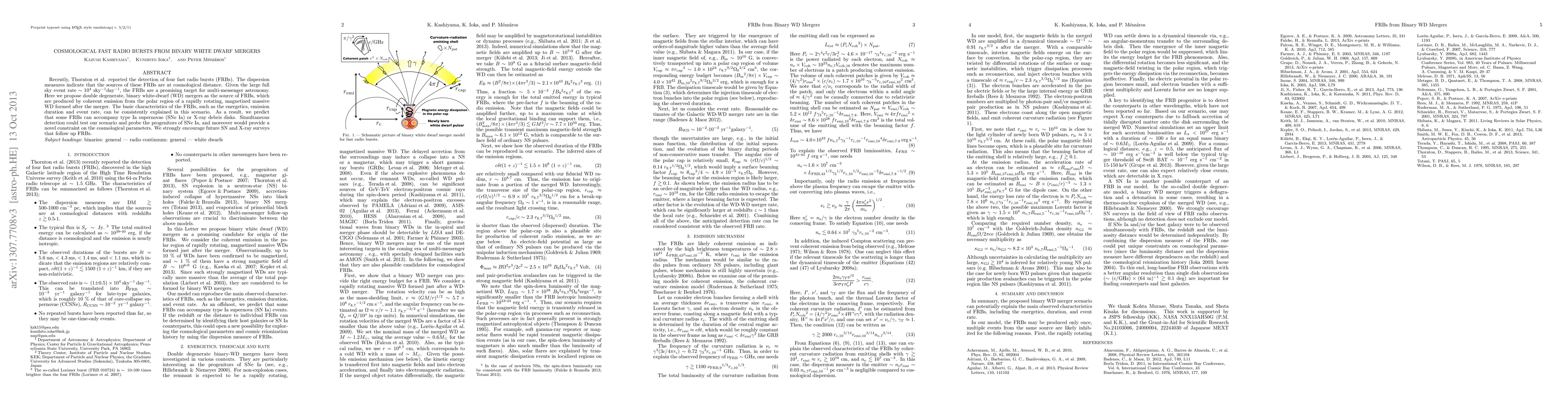 Binary white dwarf mergers could produce fast radio bursts with characteristics consistent with observed FRBs, offering a new target for multi-messenger astronomy and potential constraints on cosmological parameters.