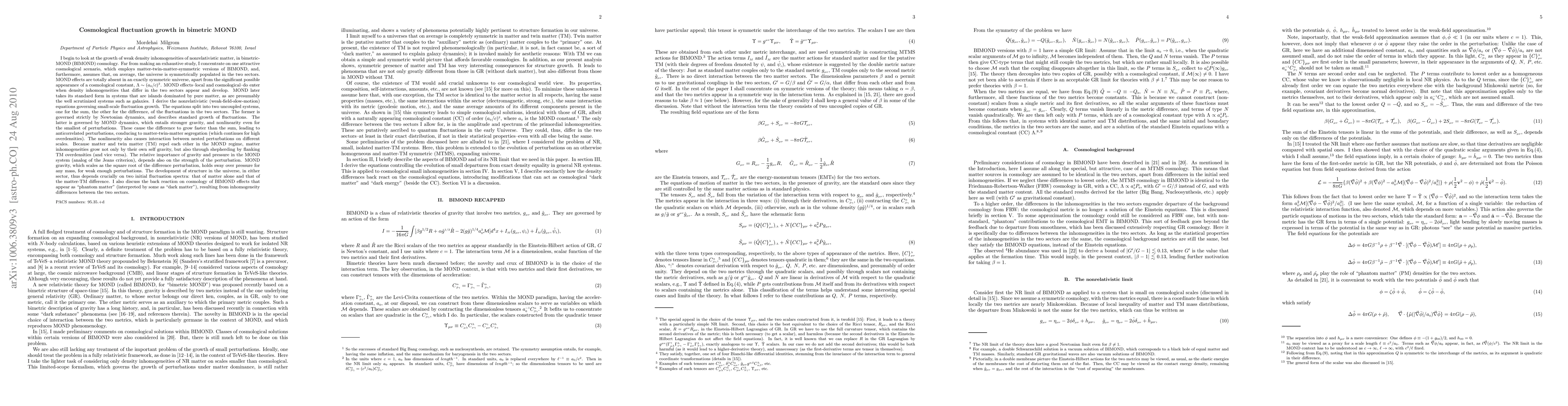 I look at the growth of weak density inhomogeneities of nonrelativistic matter, in bimetric-MOND (BIMOND) cosmology. I concentrate on matter-twin-matter-symmetric versions of BIMOND, and assume that, on average, the universe is symmetrically populated in the two sectors. MOND effects are absent in an exactly symmetric universe, apart from the appearance of a cosmological constant, Lambda~(a0/c)^2. MOND effects-local and cosmological-do enter when density inhomogeneities that differ in the two sectors appear and develop. MOND later takes its standard form in systems that are islands dominated by pure matter. I derive the nonrelativistic equations governing small-scale fluctuation growth. The equations split into two uncoupled systems, one for the sum, the other for the difference, of the fluctuations in the two sectors. The former is governed strictly by Newtonian dynamics. The latter is governed by MOND dynamics, which entails stronger gravity, and nonlinearity even for the smallest of perturbations. These cause the difference to grow faster than the sum, conducing to matter-twin-matter segregation. The nonlinearity also causes interaction between nested perturbations on different scales. Because matter and twin matter (TM) repel each other in the MOND regime, matter inhomogeneities grow not only by their own self gravity, but also through shepherding by flanking TM overdensitie. The relative importance of gravity and pressure in the MOND system depends also on the strength of the perturbation. The development of structure in the universe, in either sector, thus depends crucially on two initial fluctuation spectra: that of matter alone and that of the matter-TM difference. I also discuss the back reaction on cosmology of BIMOND effects that appear as "phantom matter" resulting from inhomogeneity differences between the two sectors.
