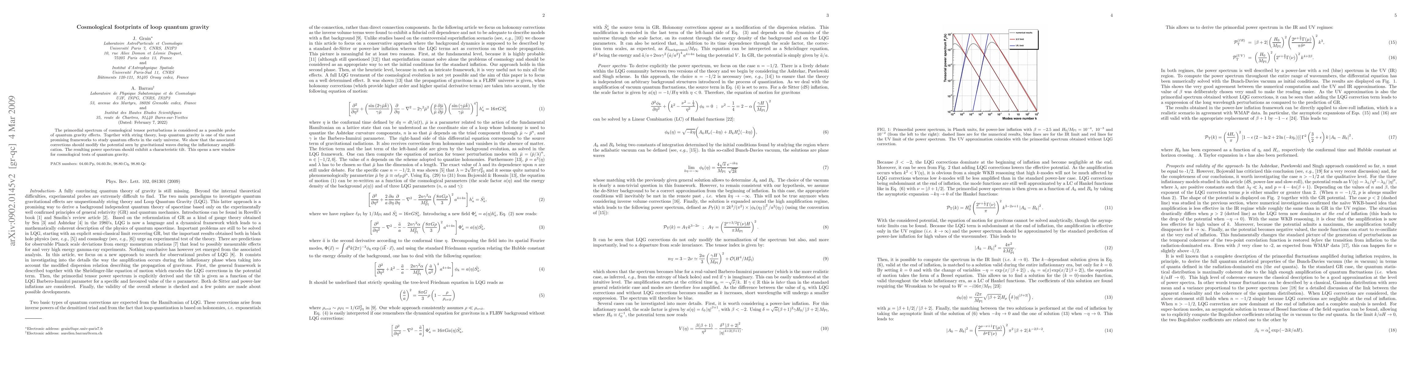 This paper investigates how loop quantum gravity could leave imprints on the primordial spectrum of cosmological tensor perturbations, potentially modifying the power spectrum and offering new cosmological tests for quantum gravity effects during the inflationary period. The study highlights a characteristic tilt in the power spectrum due to holonomy corrections.